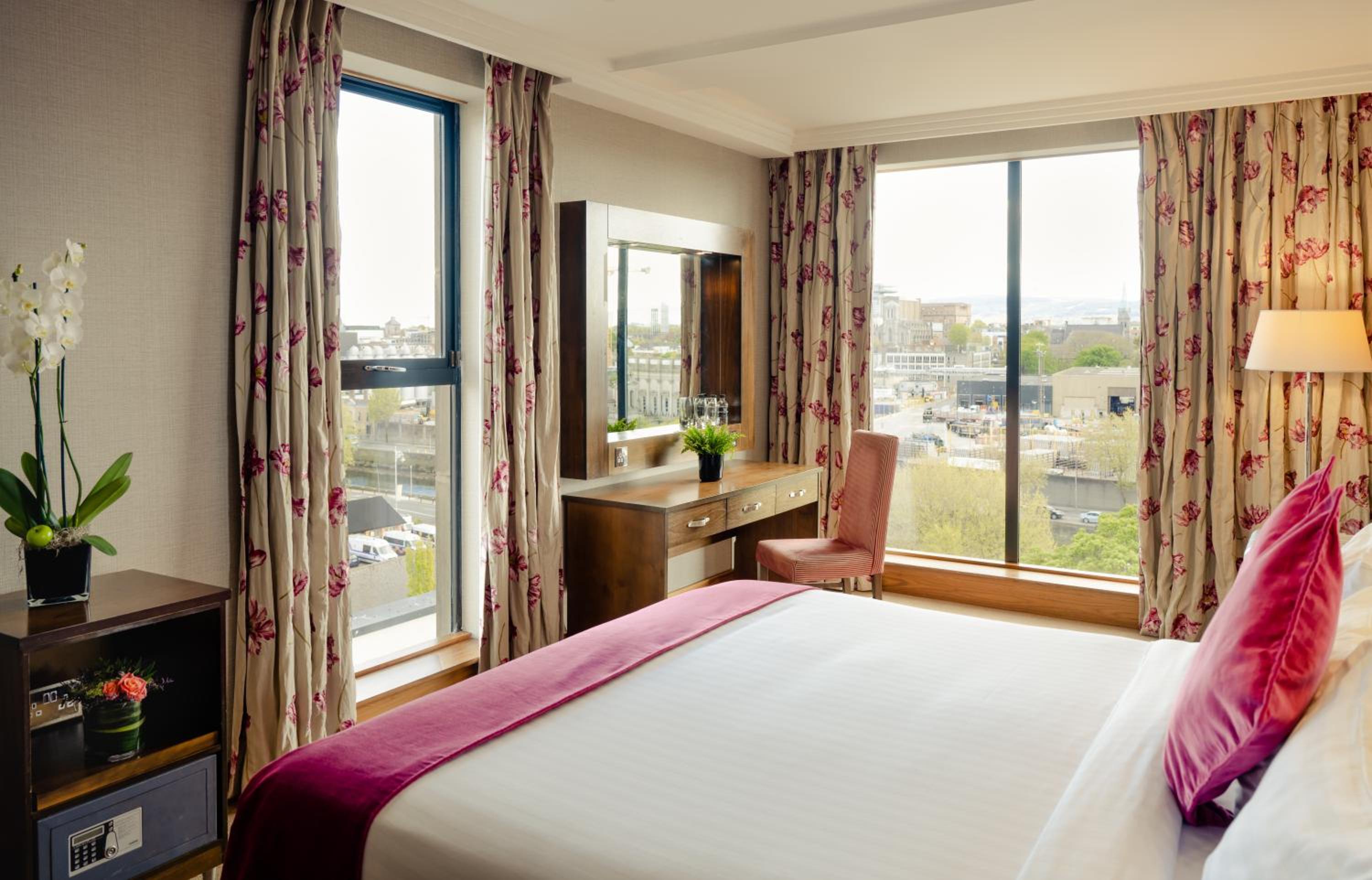 Very friendly staff, immaculate room, beautiful hotel. The breakfast buffet was extensive and accommodated food allergies. Food in the hotel restaurants was very good, the location was excellent for visiting Kilmainham, IMMA, National Museum at Collin Barracks, Arbour Hill. A 20 min walk to city centre, bus and Luas stops within metres of the hotel, and Heuston train station a couple blocks away. On-site parking for a decent fee. Overall, a great hotel for us.