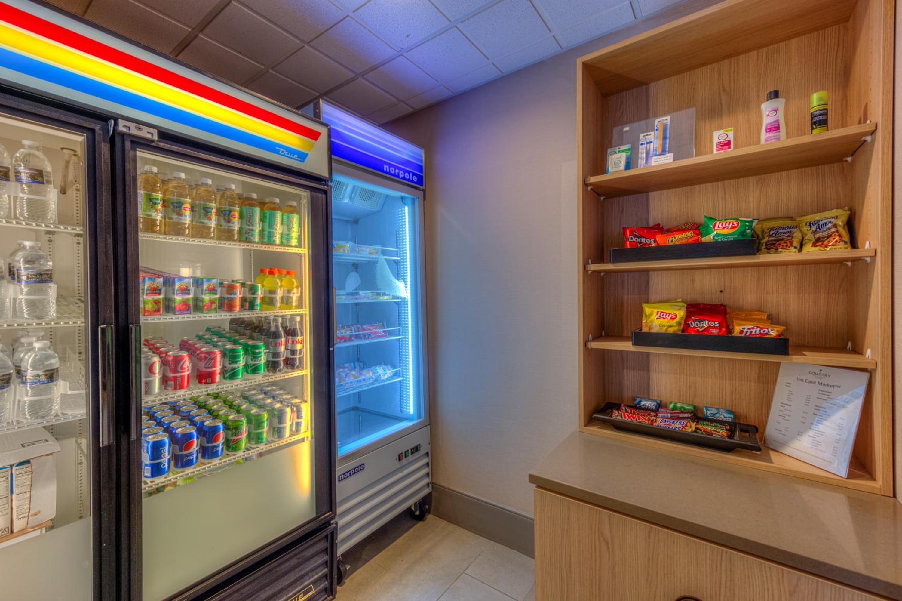 Start your day right with a delicious continental breakfast featuring Belgian waffles and cheese omelets. Guests can also indulge in complimentary fruit, cookies, and candy. Additionally, the hotel offers a convenient Country Cupboard Store on site for any essentials you may need.