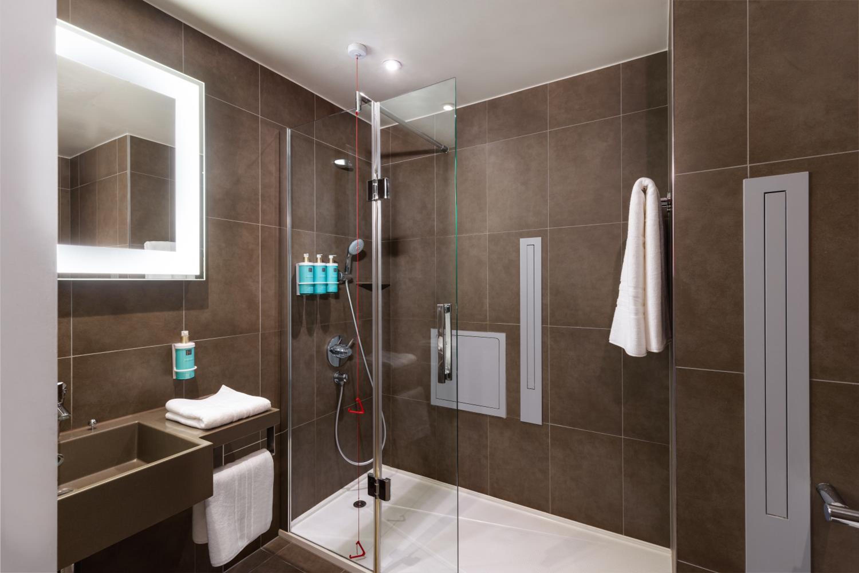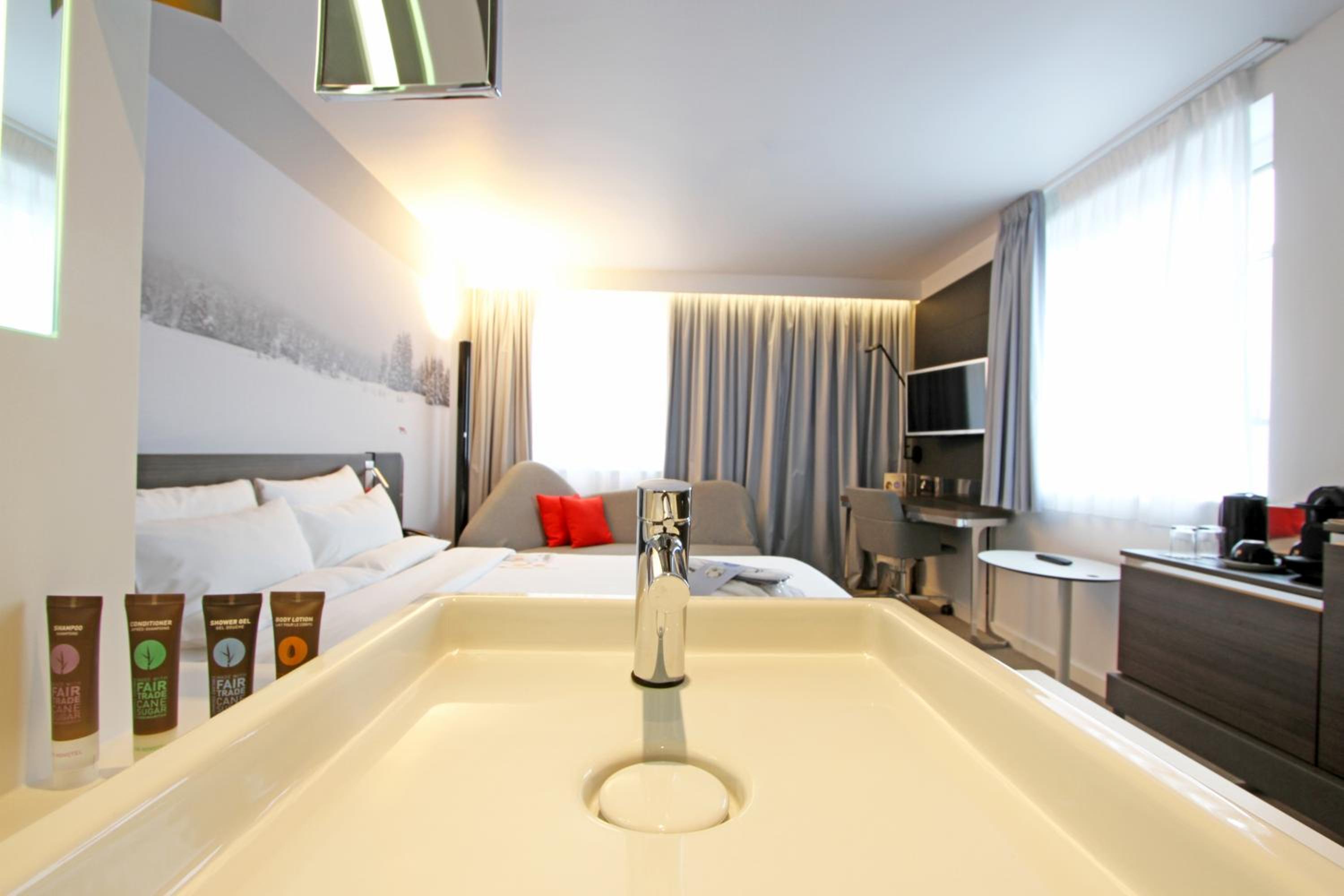 Novotel Tower Bridge offers spacious and stylish rooms with comfortable queen beds, a sofa, and modern amenities. Each room features a work desk, tea/coffee-making facilities, and a private bathroom with toiletries, ensuring a comfortable stay for guests.