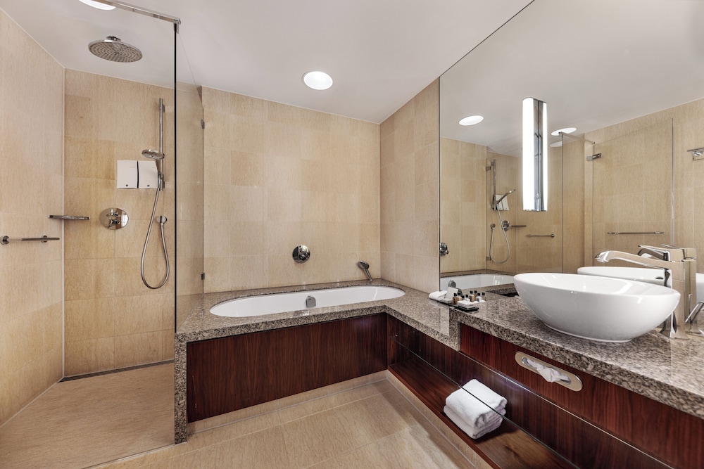 It is definitely a nice and comfortable hotel with a great wellness center (gym, swimming pool, sauna). Restaurants are very good but overpriced.