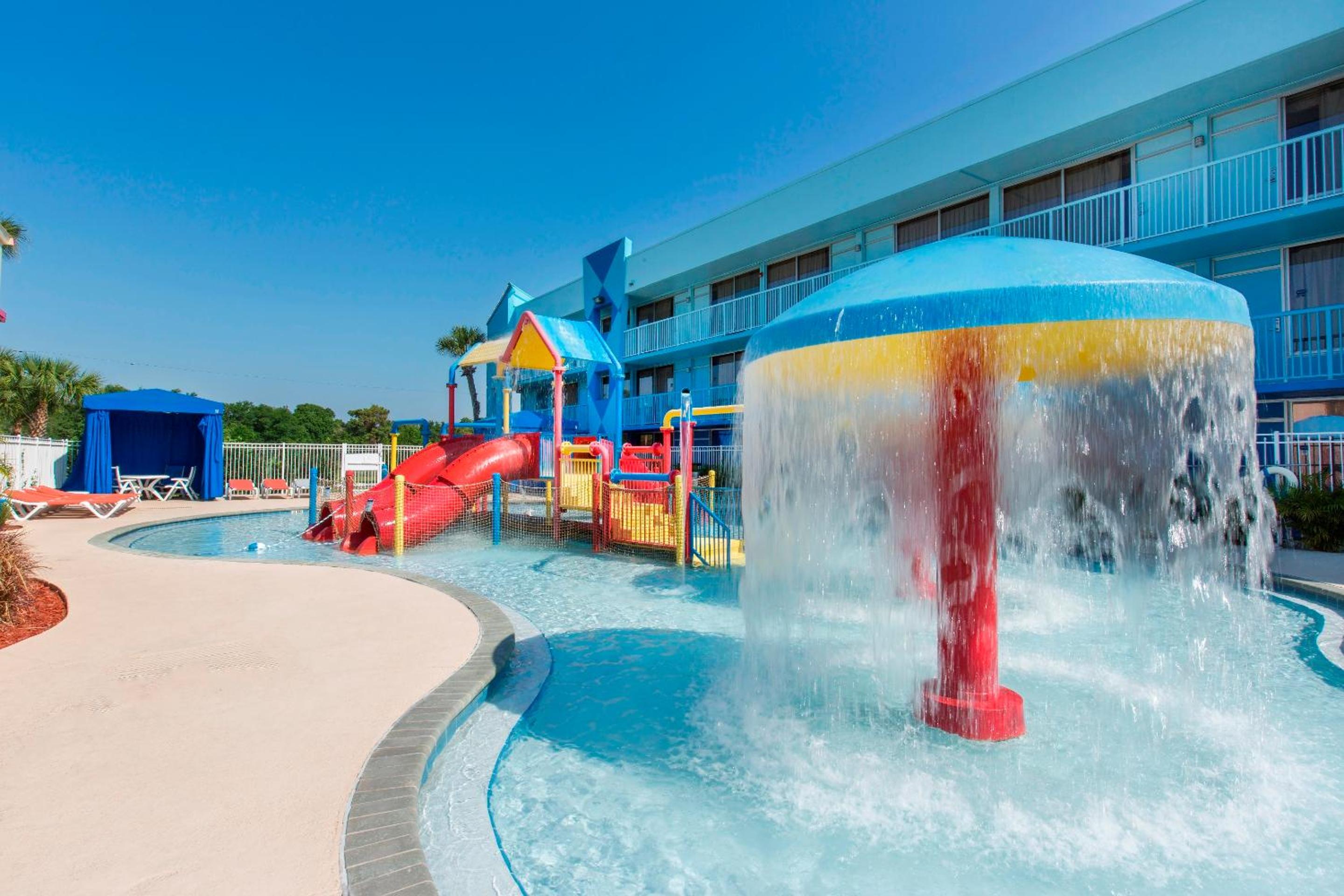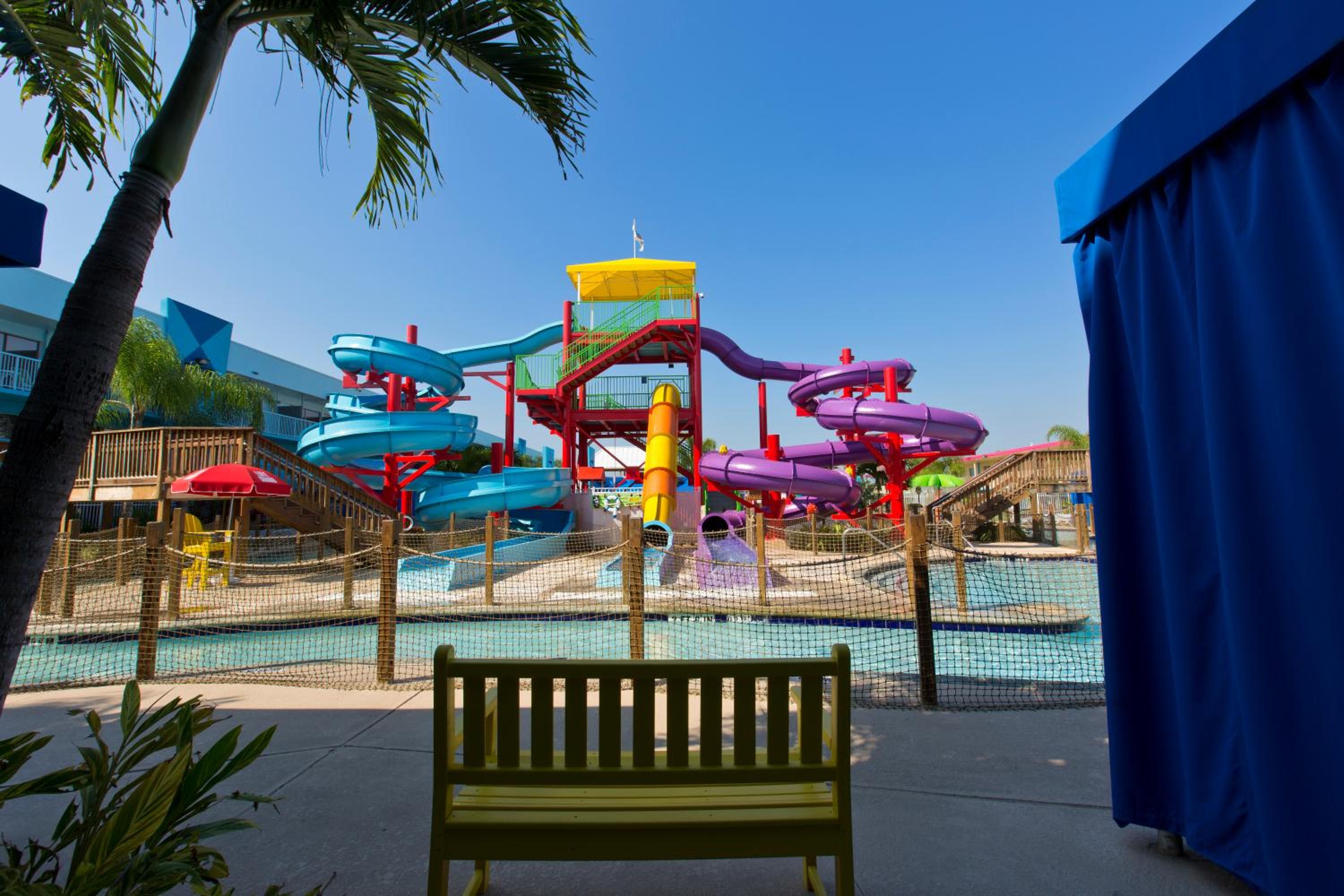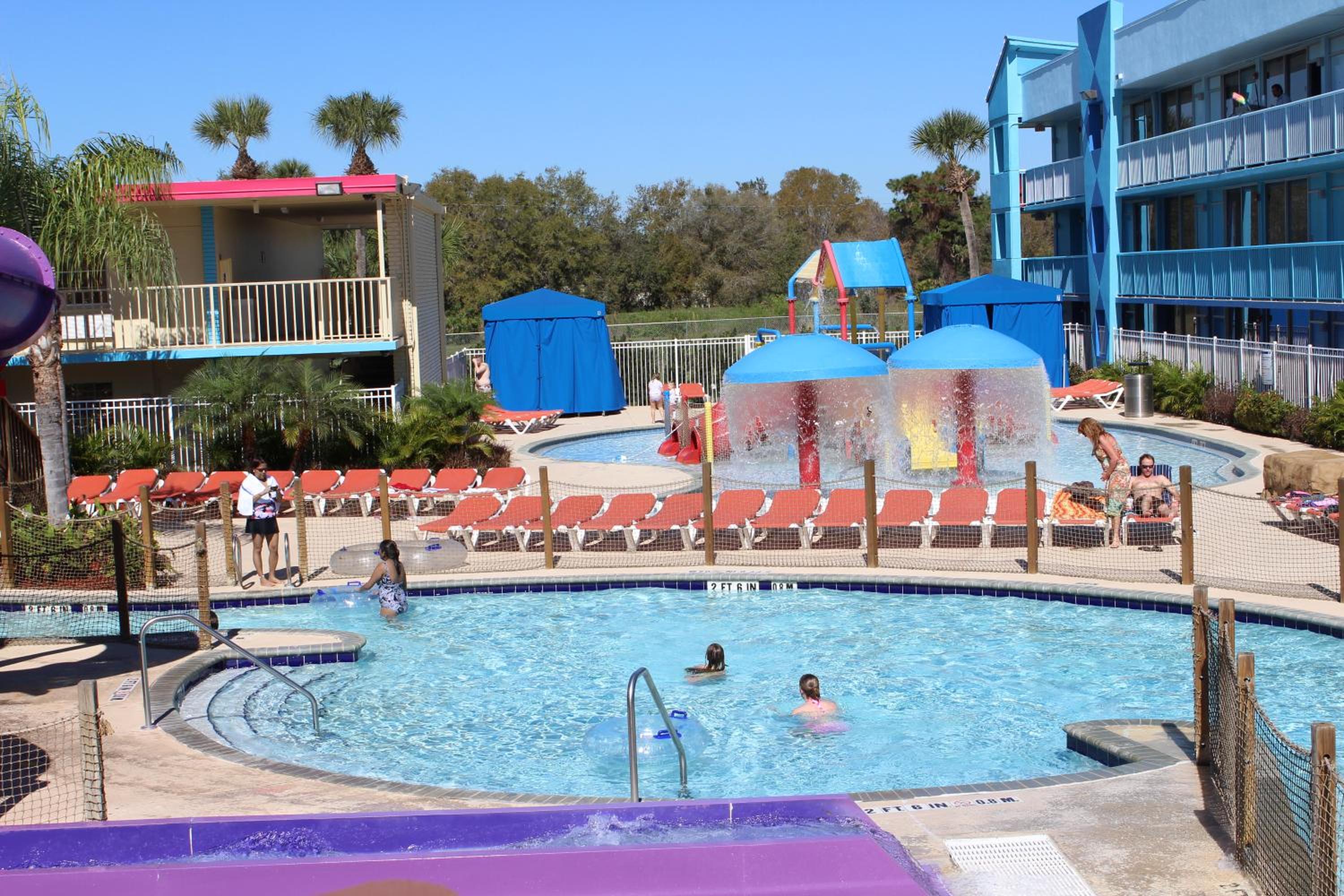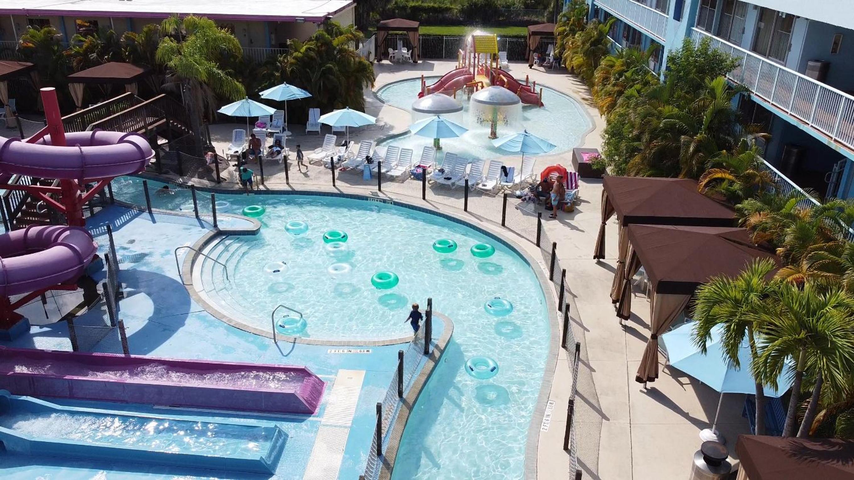 Experience the ultimate getaway at Flamingo Waterpark Resort in Kissimmee, Florida. Dive into our heated outdoor pool with a relaxing hot tub, enjoy thrilling water park facilities, and tantalize your taste buds at our on-site restaurant.