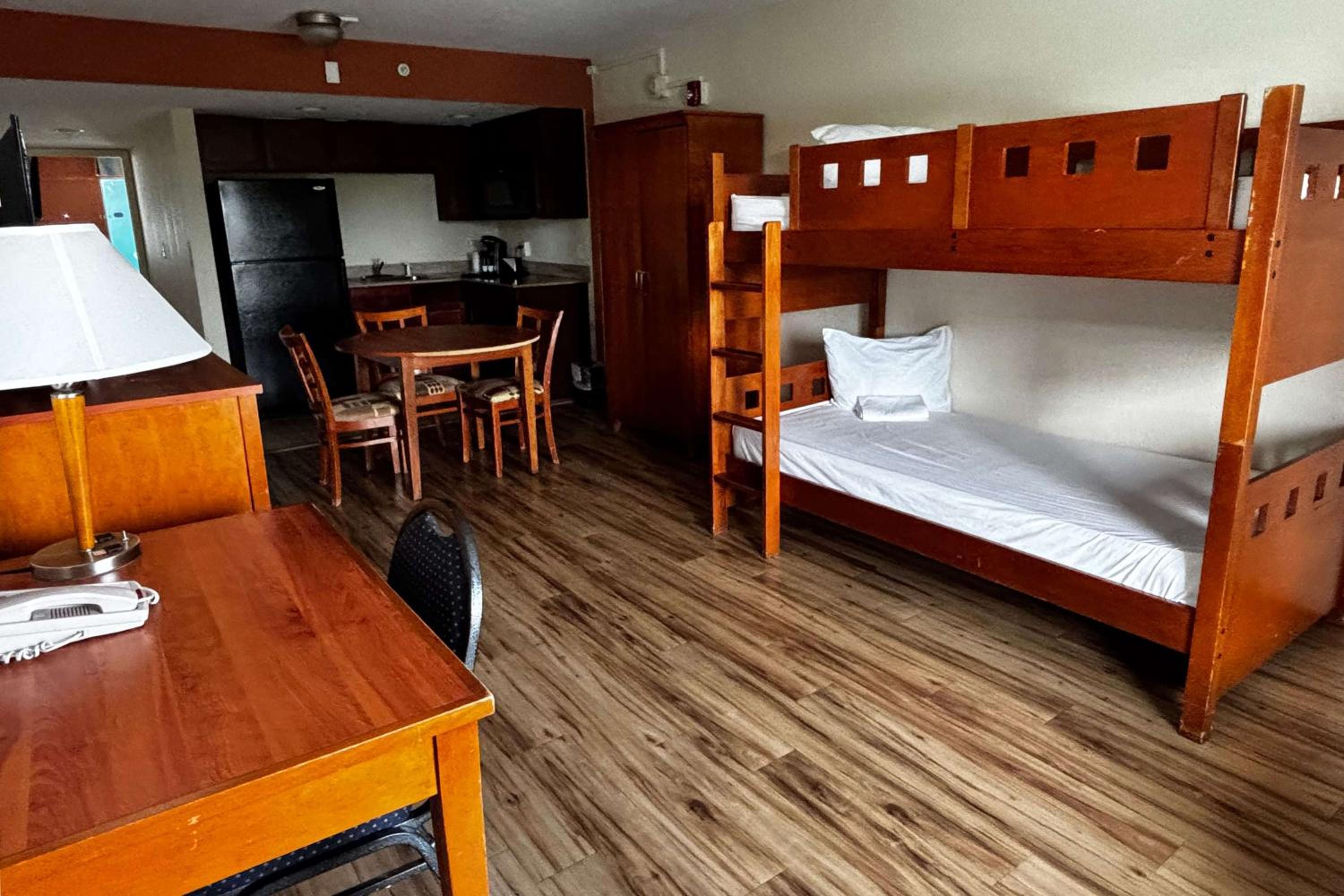 Indulge in our character-themed suites featuring spa baths or balconies with water park views. All rooms are equipped with modern amenities like cable TV, microwave, and a small refrigerator. For a fee, enjoy our heated lazy river, water slides, and shaded pool seating.