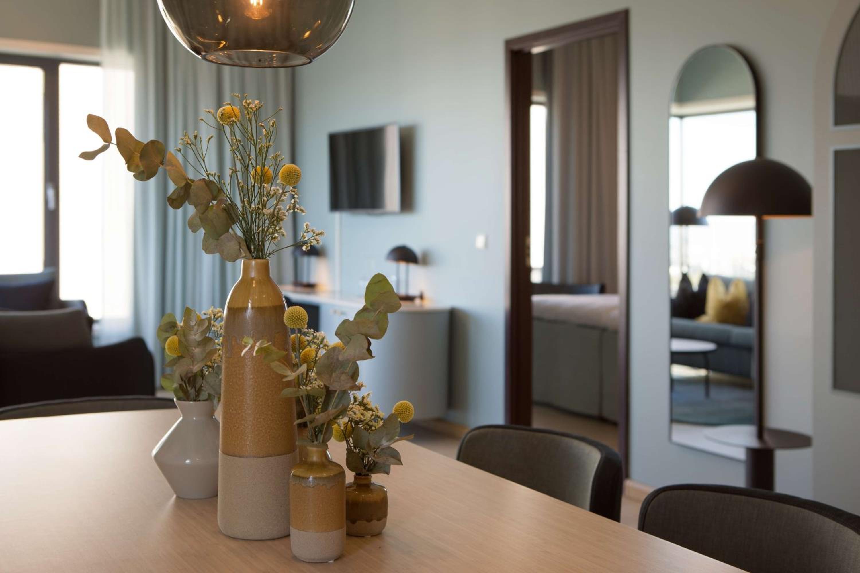 Experience comfort and convenience in our air-conditioned rooms at Scandic Helsfyr Hotel. Stay connected with complimentary WiFi and enjoy the sleek design with wooden floors, flat-screen TV, work desk, and minibar.