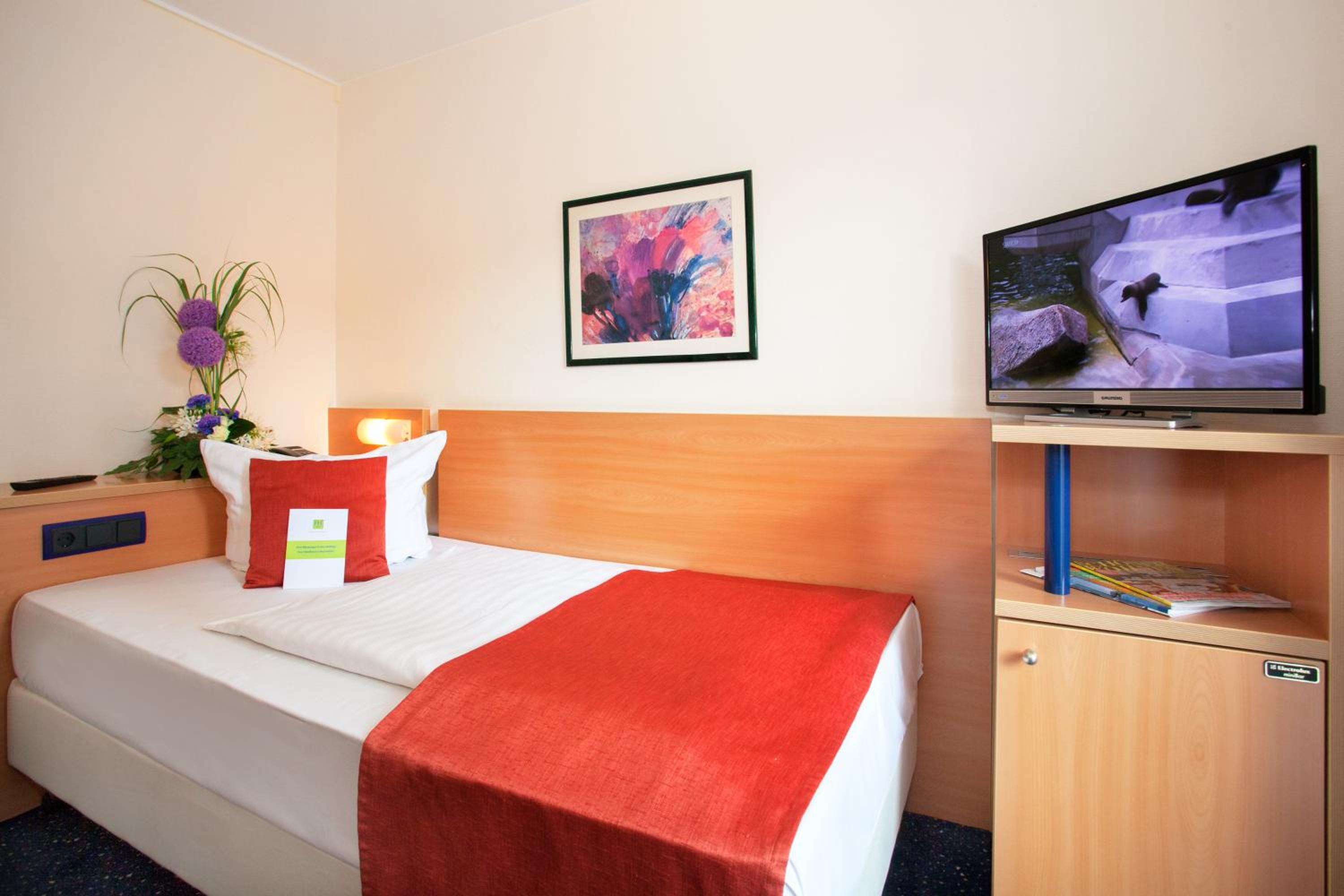 in der Nähe des Hauptbahnhofes, für Bahnreisende ideal, freundliches Personal, kleiner Kühlschrank auf dem Zimmer