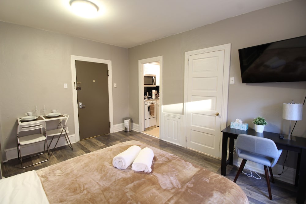 Midtown Suites was such a lovely, affordable, and convenient stay. It was very close to the main street shops and stores. There was a nice homey feel to the apartment with lots of little perks that I initially overlooked. There's complimentary breakfast, laundry on-site, a kitchenette with basic cooking items, smart tv with hulu and more, and attentive/responsive staff. The only downside is that there were no wash cloths in the room, but plenty of bath towels and hand towels. Overall great experience! Don't second guess it.