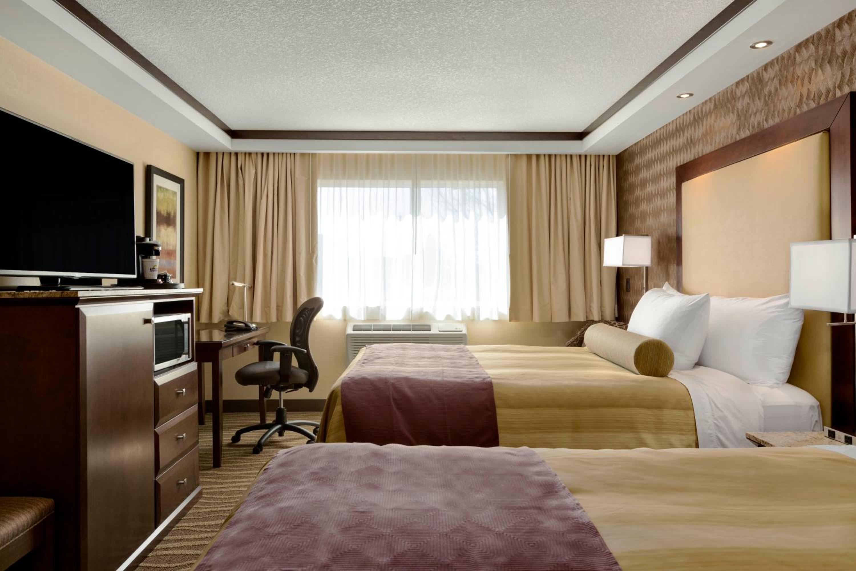 The guest rooms at Edmonton Airport Days Inn and Conference Center are well-equipped with modern conveniences like a microwave, refrigerator, and free Wi-Fi, ensuring a comfortable stay for all visitors.