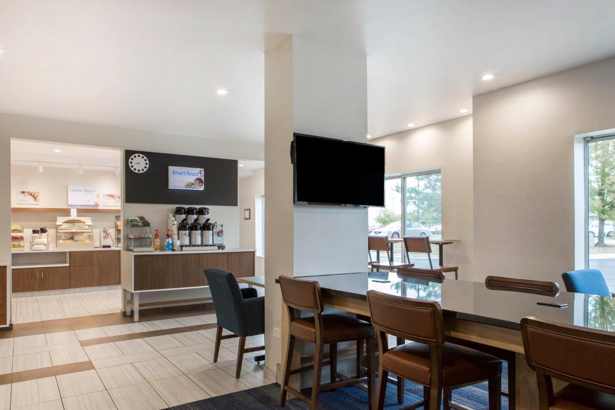 Start your day with a delicious continental breakfast including waffles and fresh fruit. Unwind with free coffee and cookies in the lobby. Take advantage of the fitness center and launderette facilities during your stay.