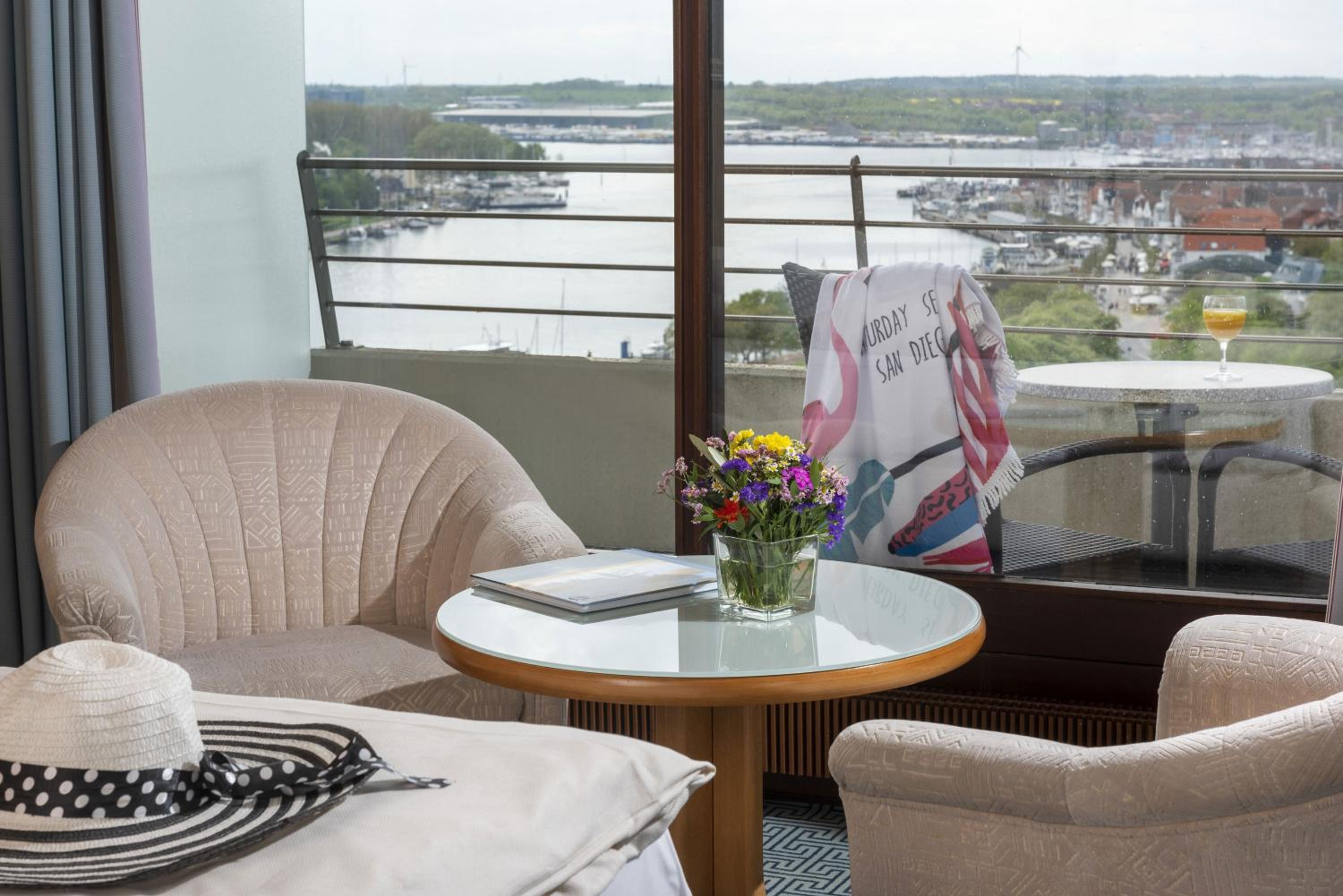 Relax in spacious rooms starting at 28 m², each offering a private balcony overlooking the Baltic Sea, Lübeck Bay, and the River Trave. Enjoy modern amenities including satellite TV, complimentary WiFi, and a cozy seating area for your comfort.
