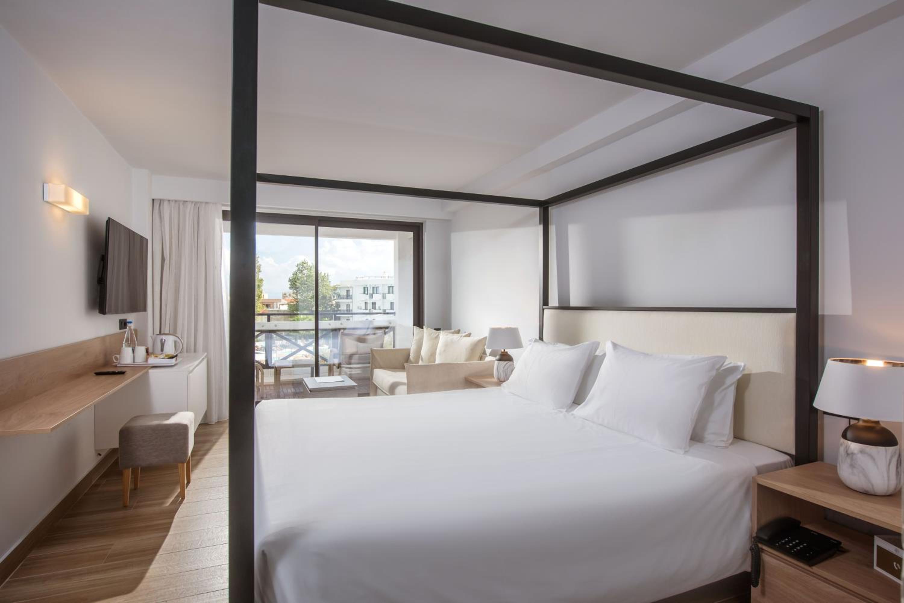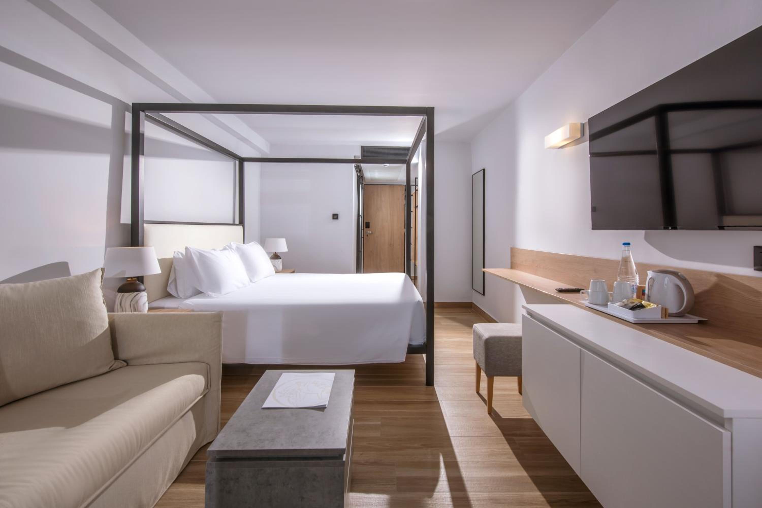 The air-conditioned rooms at Hersonissos Palace offer elegant furnishings and picturesque sea, pool, or garden views. Each room is equipped with a satellite TV, mini fridge, and a cozy seating area for your comfort.