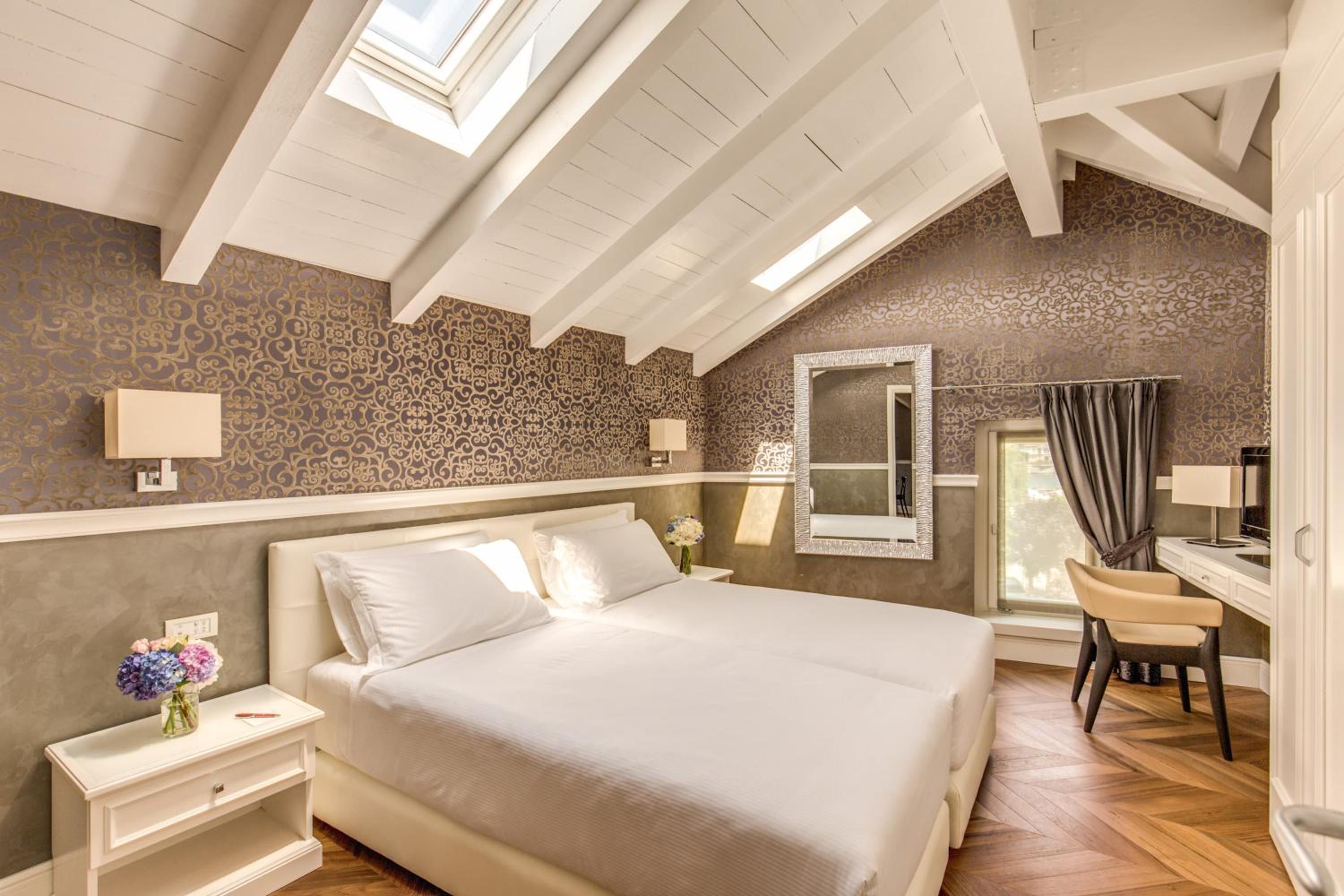 The rooms at Grand Hotel Imperiale are well-equipped with modern comforts including LCD satellite TV, internet access, and air conditioning. Guests can enjoy stunning views of the lake, garden, or Mount Bisbino from their rooms.