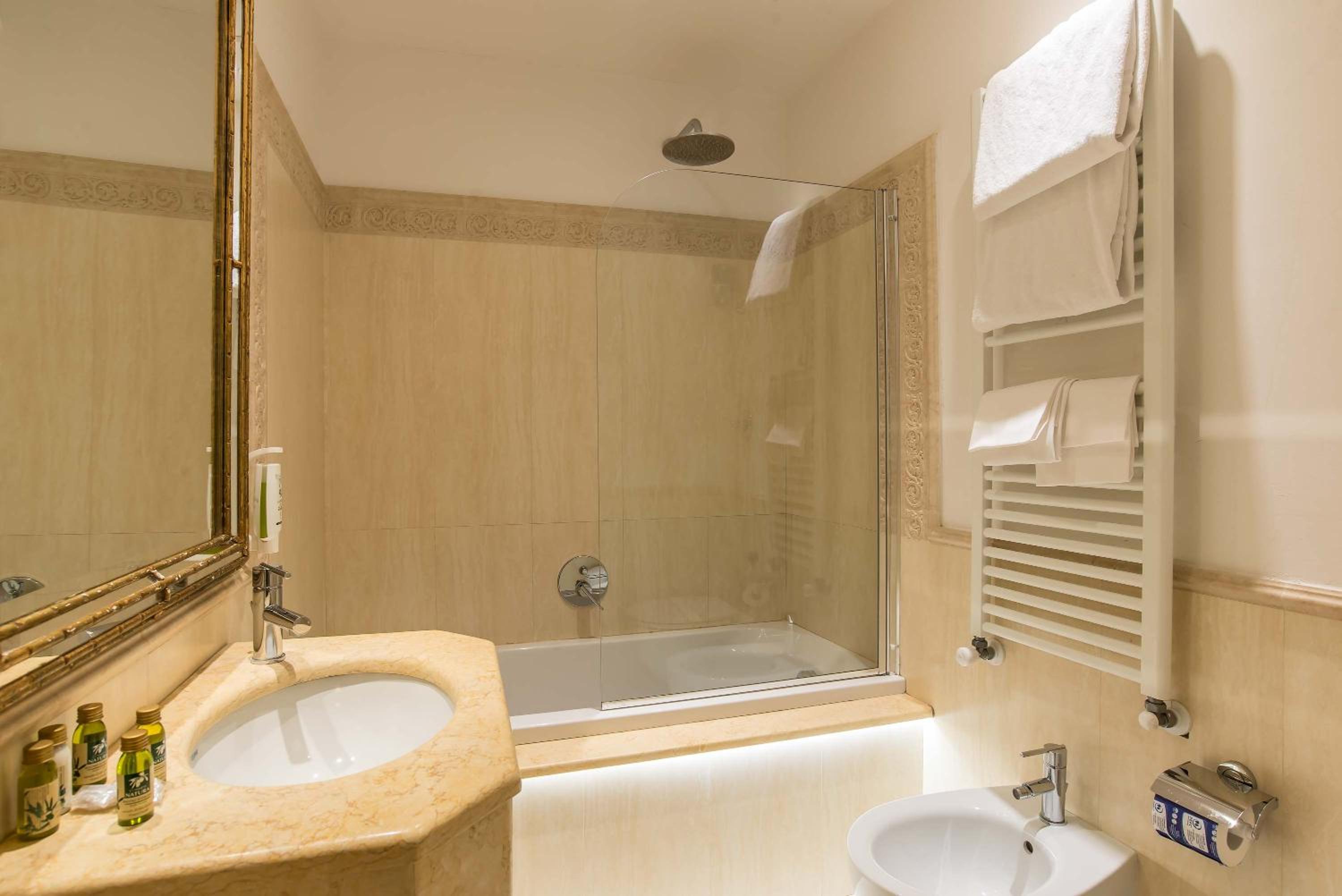 Experience the allure of The Atlantic Palace, a historic hotel neighboring Florence Santa Maria Novella Train Station. The 14th-century monastery turned hotel boasts classic rooms with LCD TVs and air conditioning, blending historic charm with modern comforts.