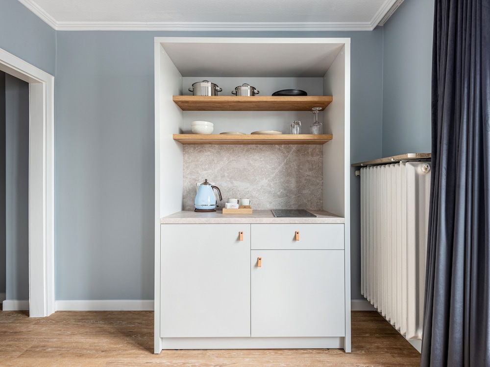 Nice room with handy kitchenette.. good connection with subway and tram.. walking distance to centrum.. overall a good room to stay at when you visit Düsseldorf..