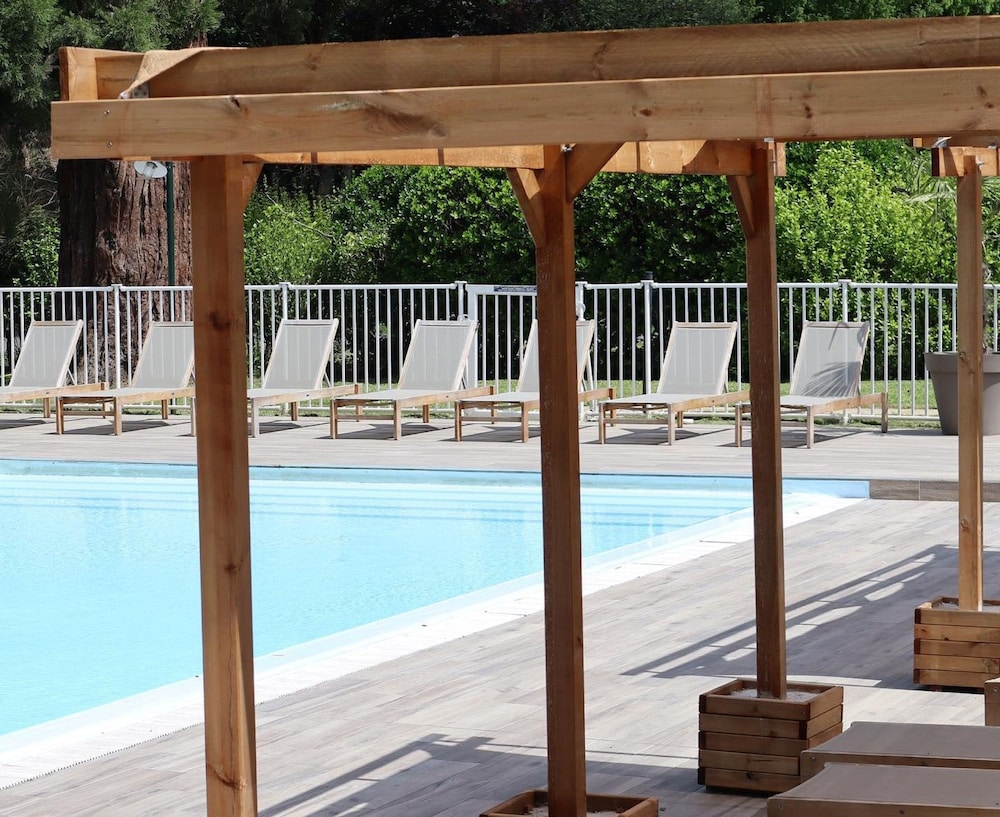 Dine at the poolside restaurant with a garden view, unwind at the bar/lounge, and enjoy a buffet breakfast on weekends.