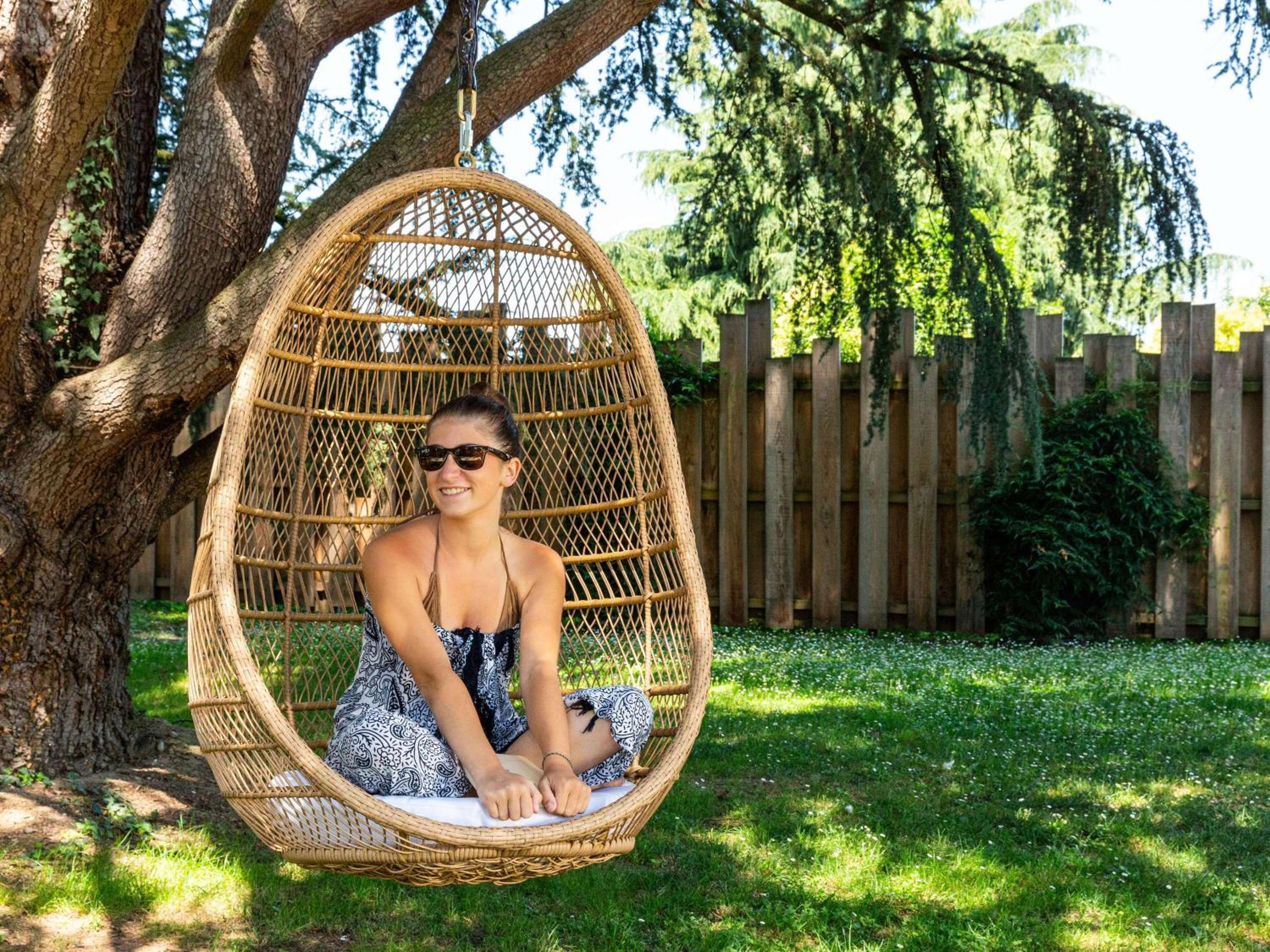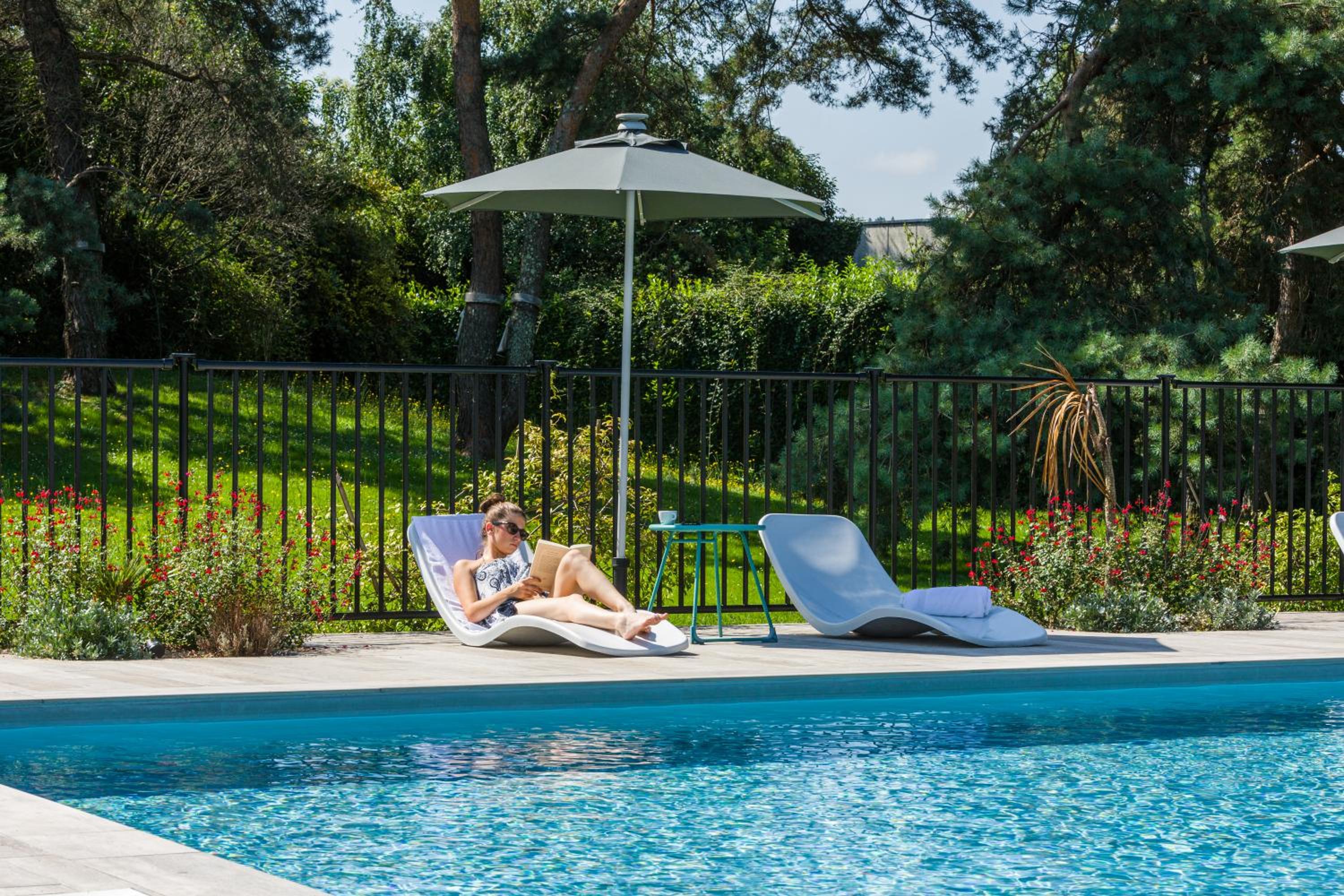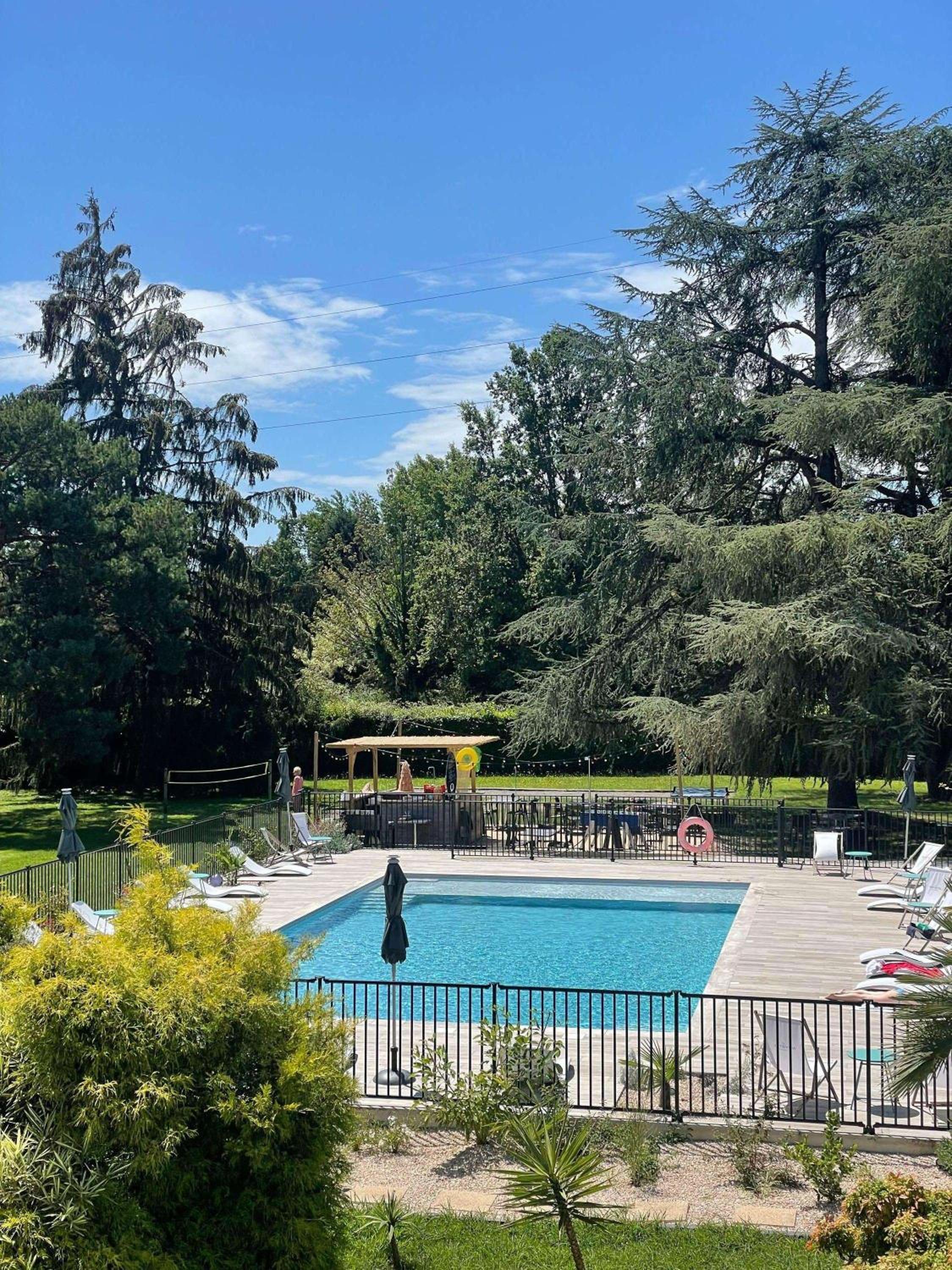 Enjoy the hotel's outdoor swimming pool set in a stunning garden, providing a tranquil escape for guests looking to unwind and soak up the sun.
