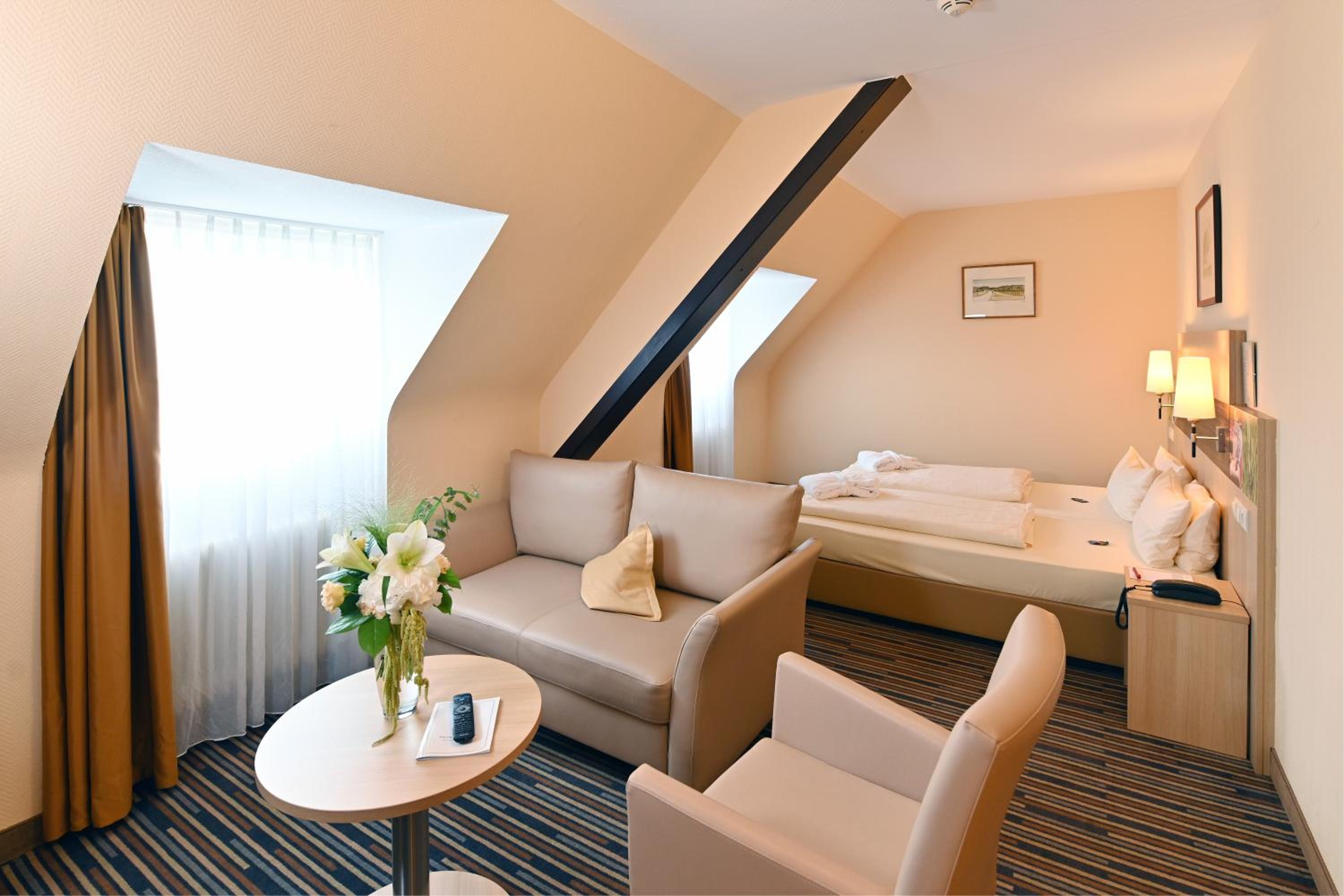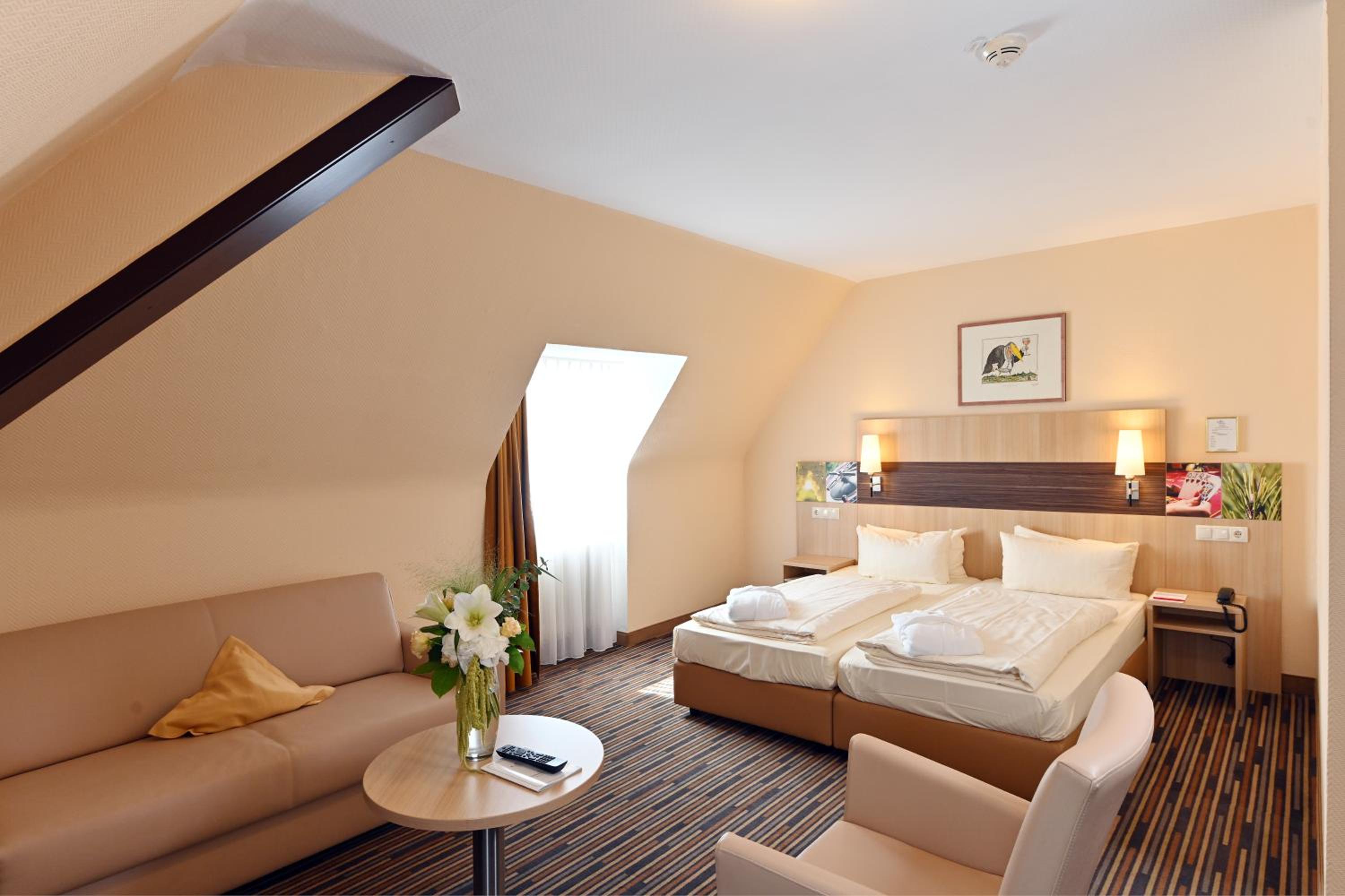 Very well equipped room. We stayed in the extended part of the hotel that feels like it's a bit newer. It was comfy, parking was fine and the Hotel is indeed nice visually.