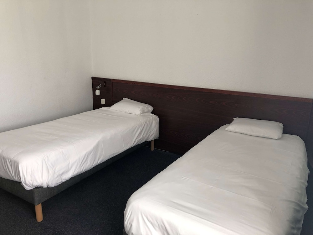 La chambre qui nous a été attribuée pour 3 personnes, la n°104, était très médiocre : les lamelles du plafond de la SDB étaient decollées, la plaque qui recouvre le bas de la baignoire était sortie, la chasse d'eau ne fonctionnait pas correctement avec de l'eau qui montait jusqu'au rebord de la cuvette, une chaleur difficilement supportable malgré le ventilateur sur pied mis à disposition et un manque de prises pour recharger nos portables. Ma fille n'a pas pu dormir correctement car elle avait la lumière forte du couloir qui passait sous la porte de la chambre sans s'éteindre. Et même si cette chambre est à l'opposé de l'autoroute, l'ouverture de la fenêtre donne directement sur les branches d'un arbre situé devant donc difficile de laisser la fenêtre ouverte. Nous étions déjà venus il y a 2 ans, pour 2 nuits à des dates différentes, l'état des chambres n'était pas aussi dégradé. Nous ne renouvellerons plus l'expérience dans cet hôtel.