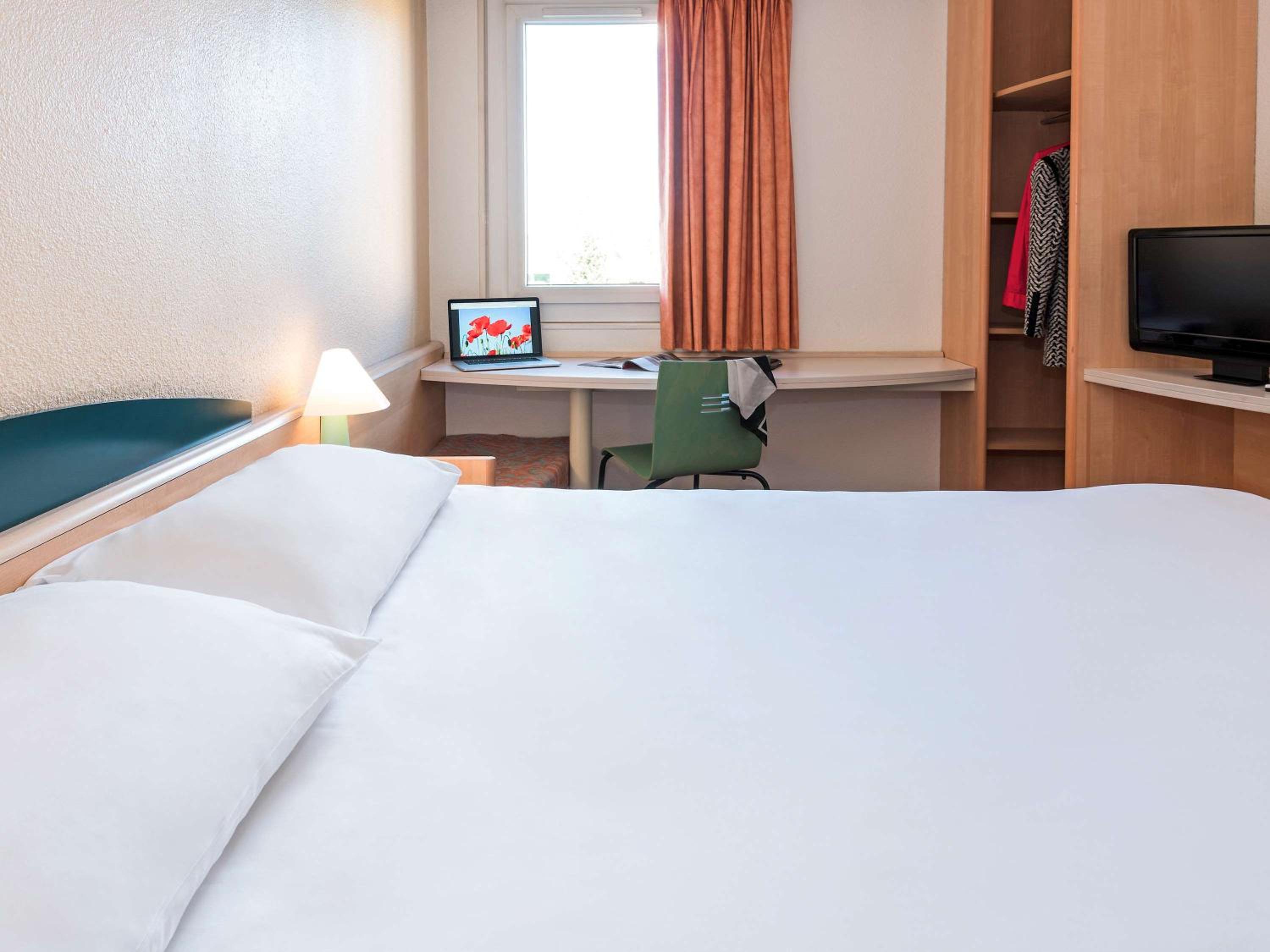 The air-conditioned guest rooms at Hôtel ibis Montbéliard are equipped with modern amenities including a TV with satellite channels, a desk, and an en suite bathroom with a shower. Enjoy a comfortable stay in a cozy setting.