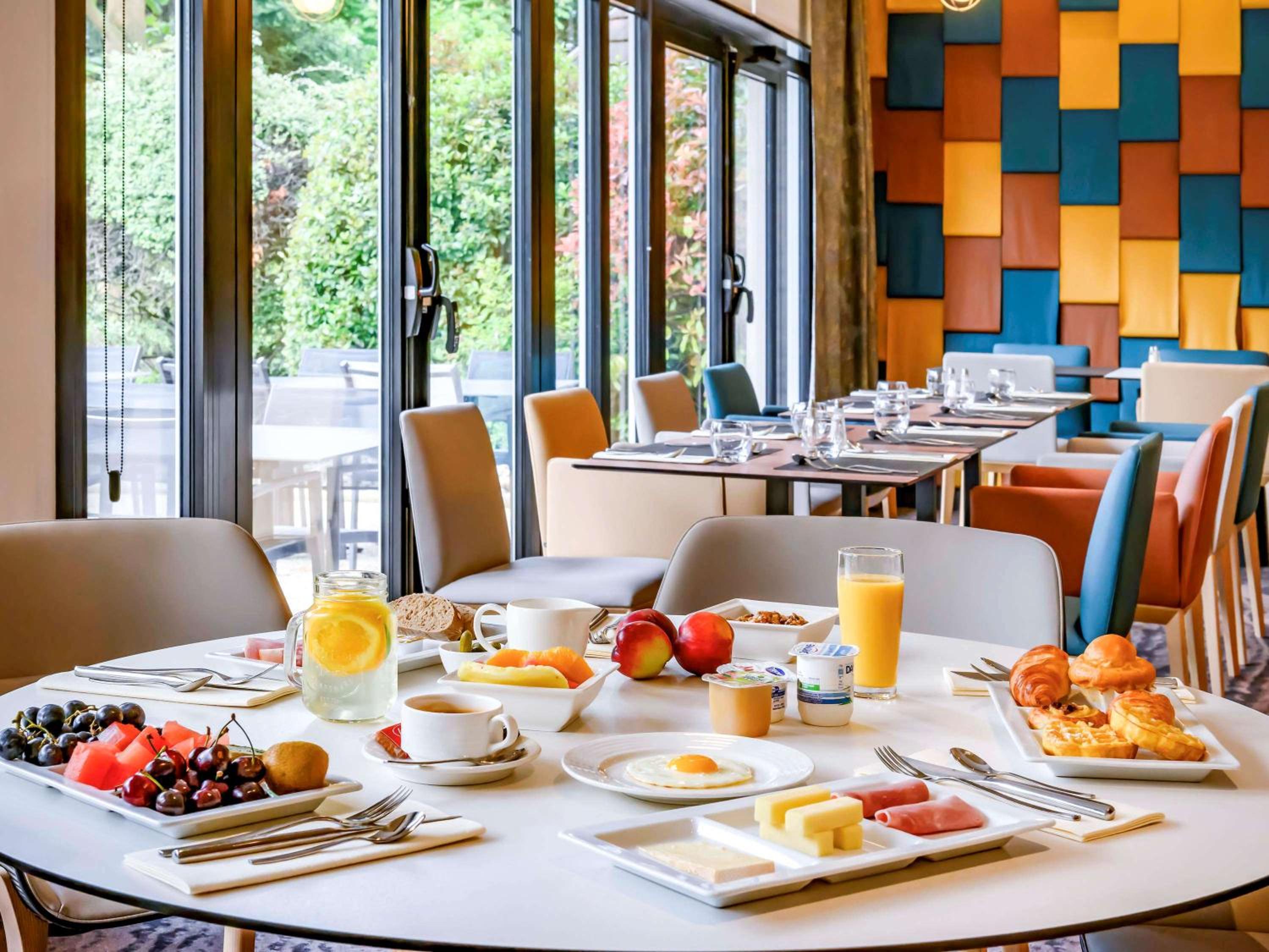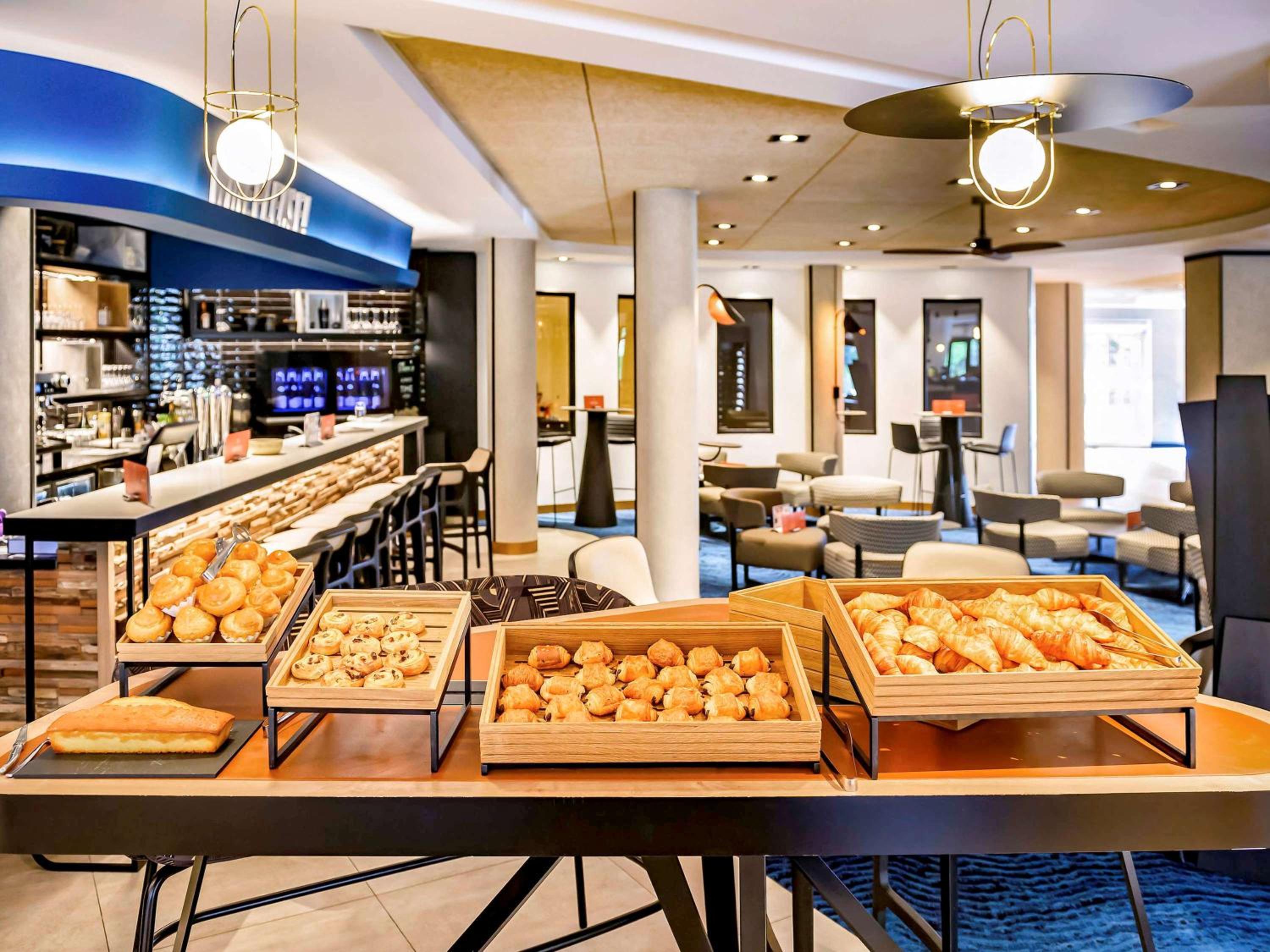Indulge in traditional French cuisine at the chic restaurant or enjoy a buffet breakfast by the pool. Unwind with a drink at the hotel's bar, perfect for a relaxing evening.