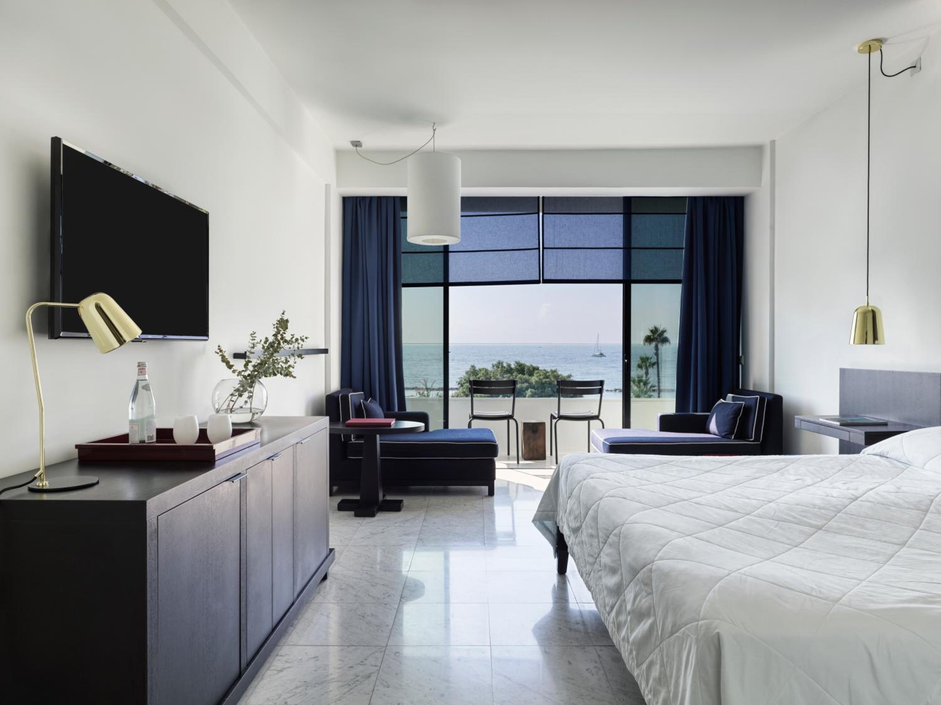 Stunning Views: Almyra Hotel, nestled in tropical gardens with a view of the Mediterranean Sea, offers rooms with floor-to-ceiling windows or balconies overlooking the sea or garden.