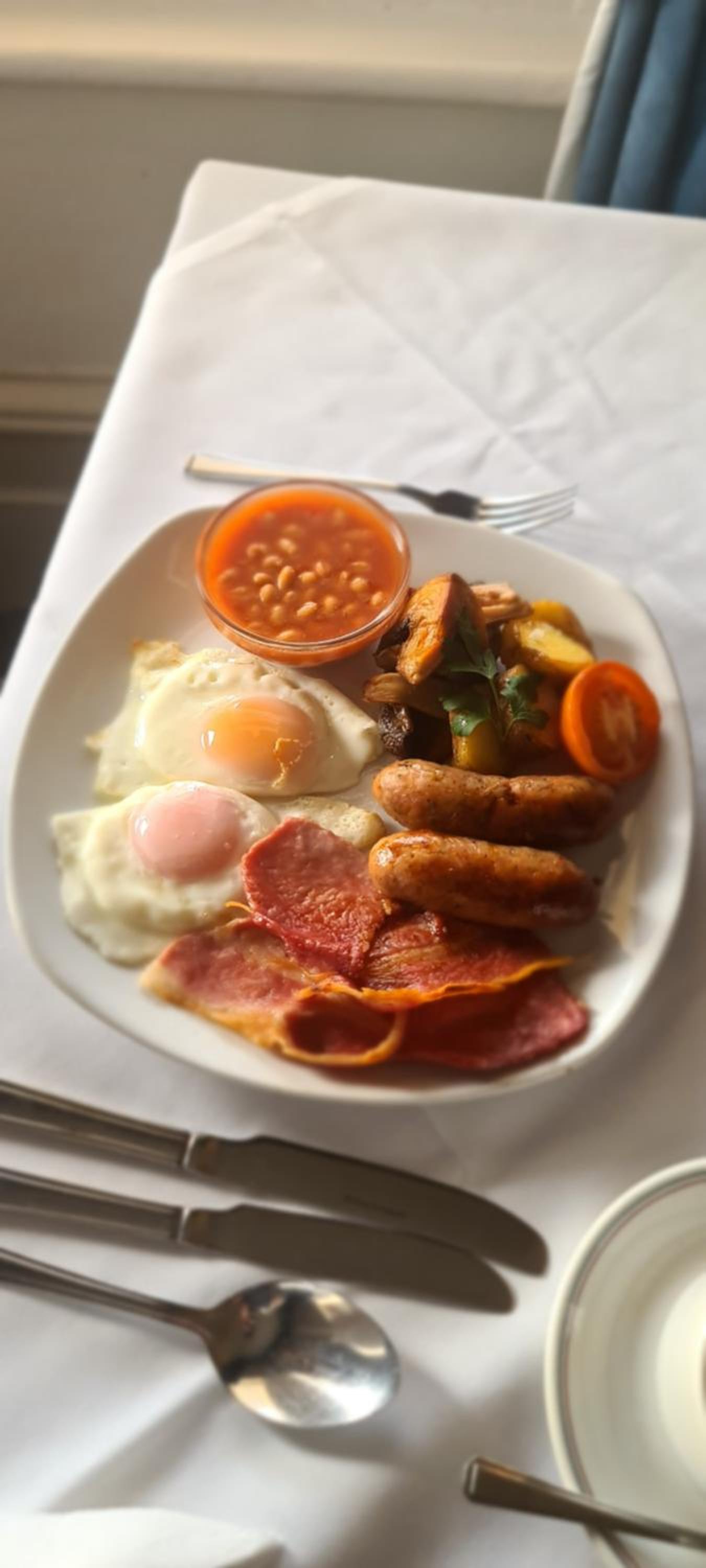 Het hotel stond in het mooie deel van Eastbourne, de boulevard. We kregen zelfs gratis een kamer upgrade omdat er toch niet zoveel gasten waren. Dus we hadden onverwachts een kamer met zeezicht. Het eten in het restaurant was ook van goede kwaliteit