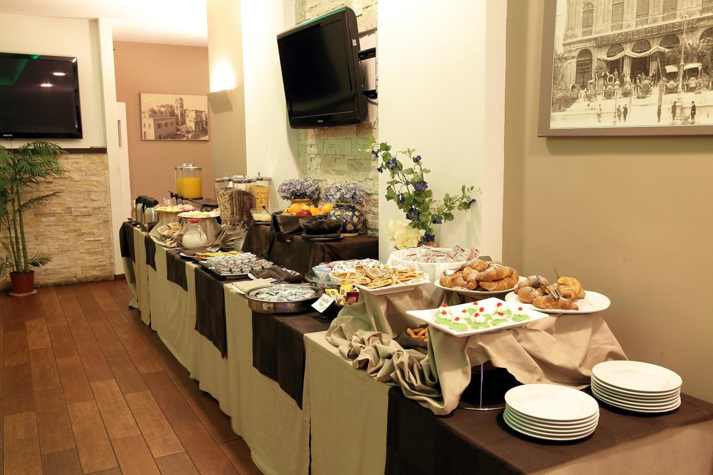 Colazione a buffet continentale con tanta scelta tra dolce e salto.