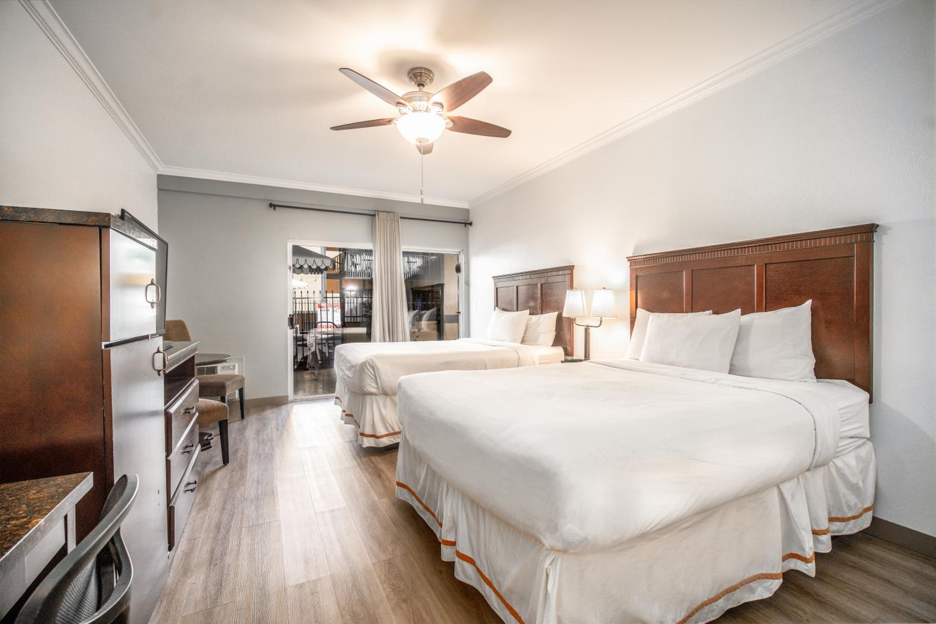 The online pictures do not represent the actual appearance or conditions of the hotel. It is very outdated, dirty, run down, and to say the least, we were highly disappointed upon arrival. The whole building (inside & out) needs a lot of maintenance & improvement. Some areas of the second floor walkway felt very unsafe in spots. (Soft, bouncy, or sagging.) Plus, its location is the furthest distance away from town requiring more walking than anticipated.