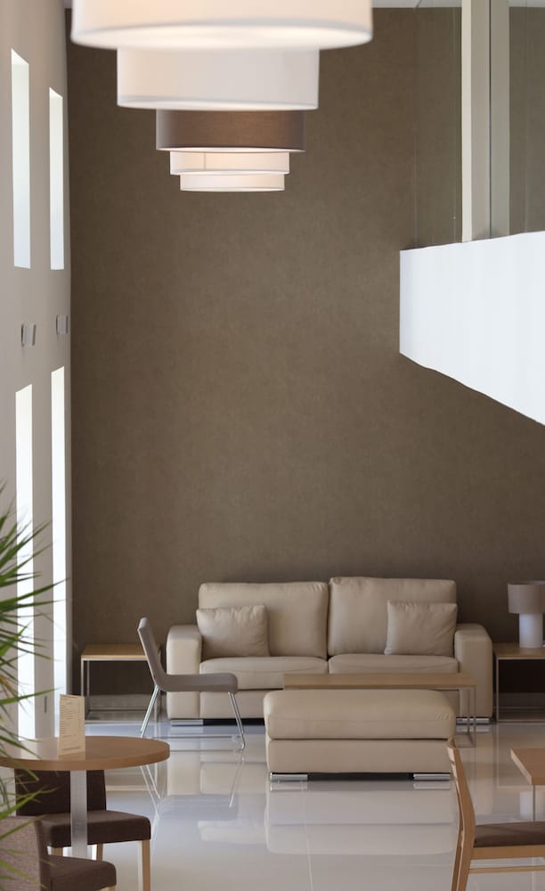 Great hotel for airport. Rooms on 6th floor (top) have balconies. The pool and pool area doesn’t open until June. In business district but nearby supermarket and fast food etc. Nice restaurant but prices on expensive side although voucher for 10% discount was offered. Decent room service choice and prices. There’s a small cafe. Depending on traffic, about 10 mins from airport by taxi. Excellent check in staff. Would use again for airport.