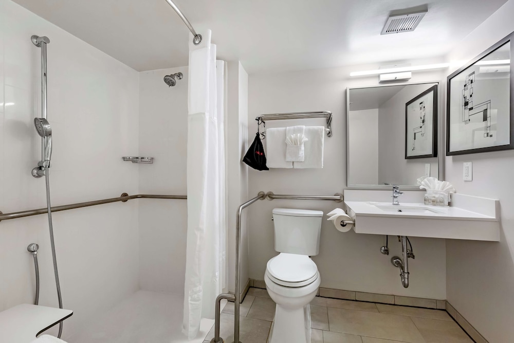 Linen had weird stains, the floor didn’t look vacuumed well and an unidentifiable spot on the shower curtain. The knob to pull to turn the shower on was very hard to pull up and leaked out of the faucet. Only one elevator was working. No vending machine on the floors. Front desk staff pleasant. Nice location to many restaurants.