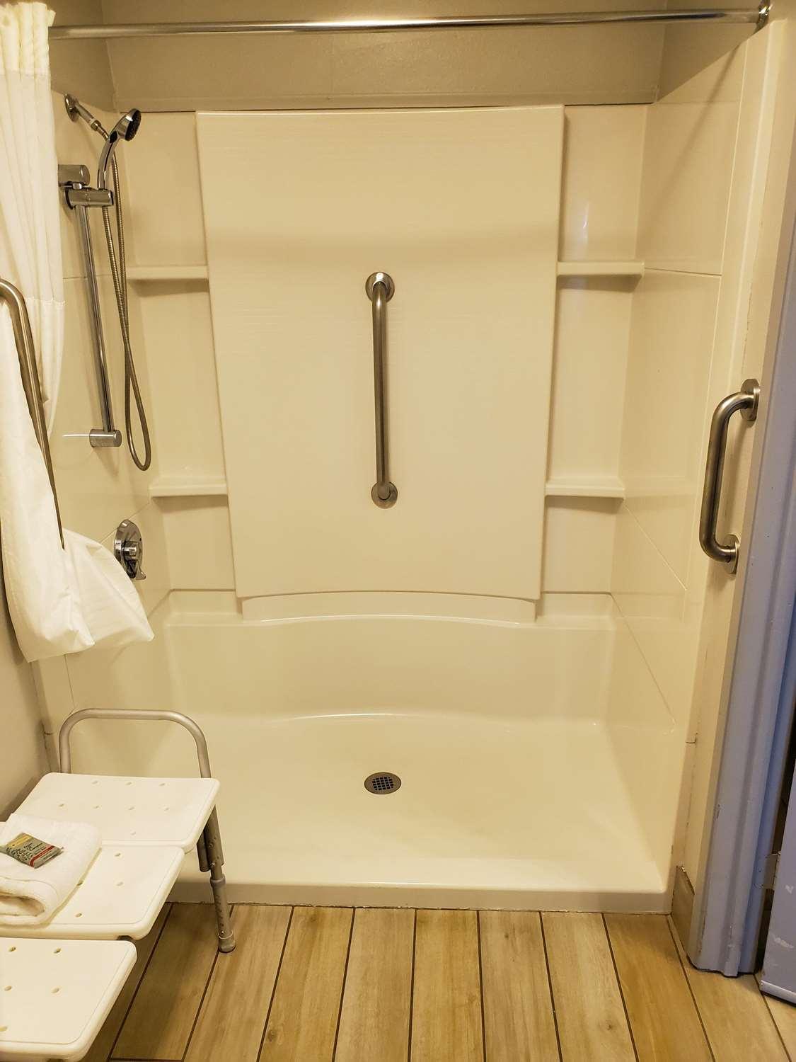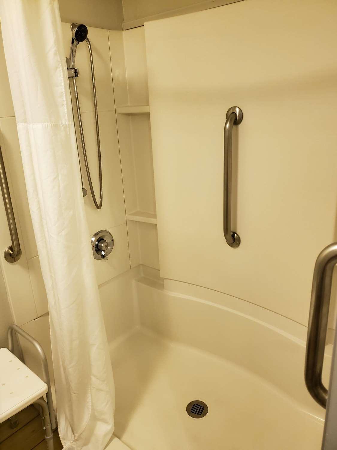 There was soap residue on the shelf in the bathroom and the breakfast was nothing to brag about. Just a plain motel breakfast.