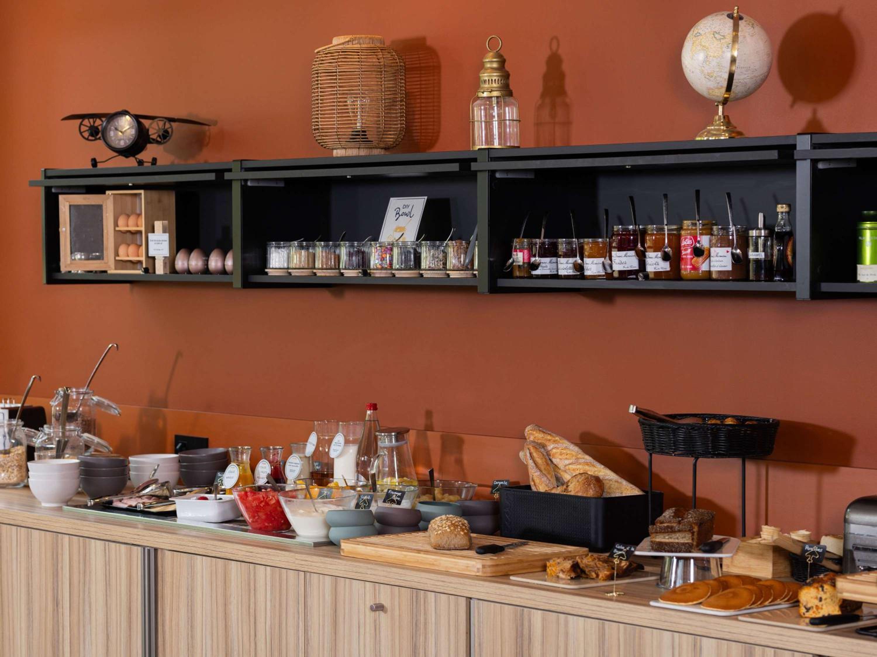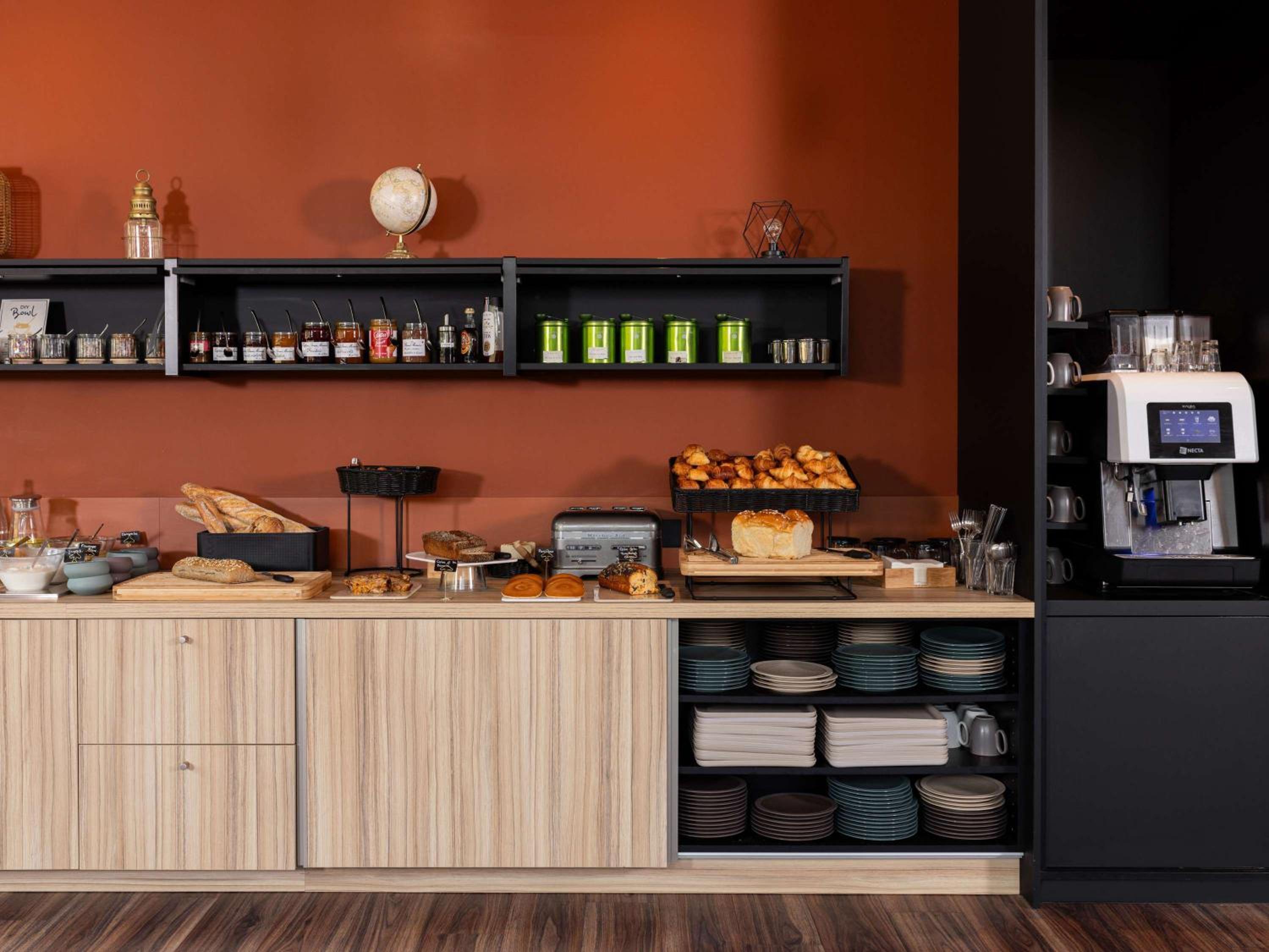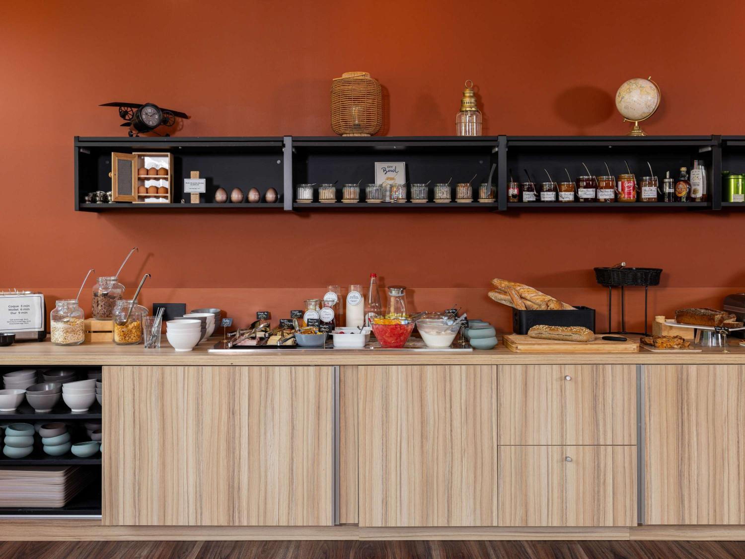 L'agencement de la vaisselle du petit-déjeuner est un peu confuse. Une réorganisation pourrait être étudiée afin de tout regrouper et de permettre aux clients de la repérer rapidement.