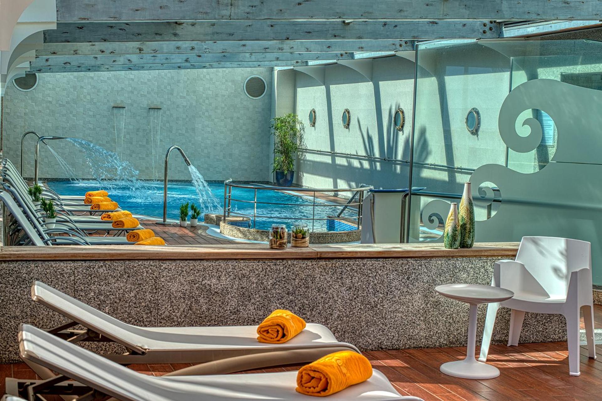El talaso estaba bien, pero justo el día que fuimos, debía haber algún problema con los parámetros del agua, no es que fuese salada, es que te abrasaba los ojos. A mi pareja le salpicó agua un chorro y automáticamente se le hincharon, dejó de ver y se le pusieron muy rojos, tuvo que salir al menos 10 minutos a las duchas para recuperar la vista. No somos personas con problemas de visión, ni operados, pero había más gente en la piscina quejándose de lo mismo, y hasta un señor con miedo porque sí estaba operado y si le hubiese pasado, habría acabado en urgencias.