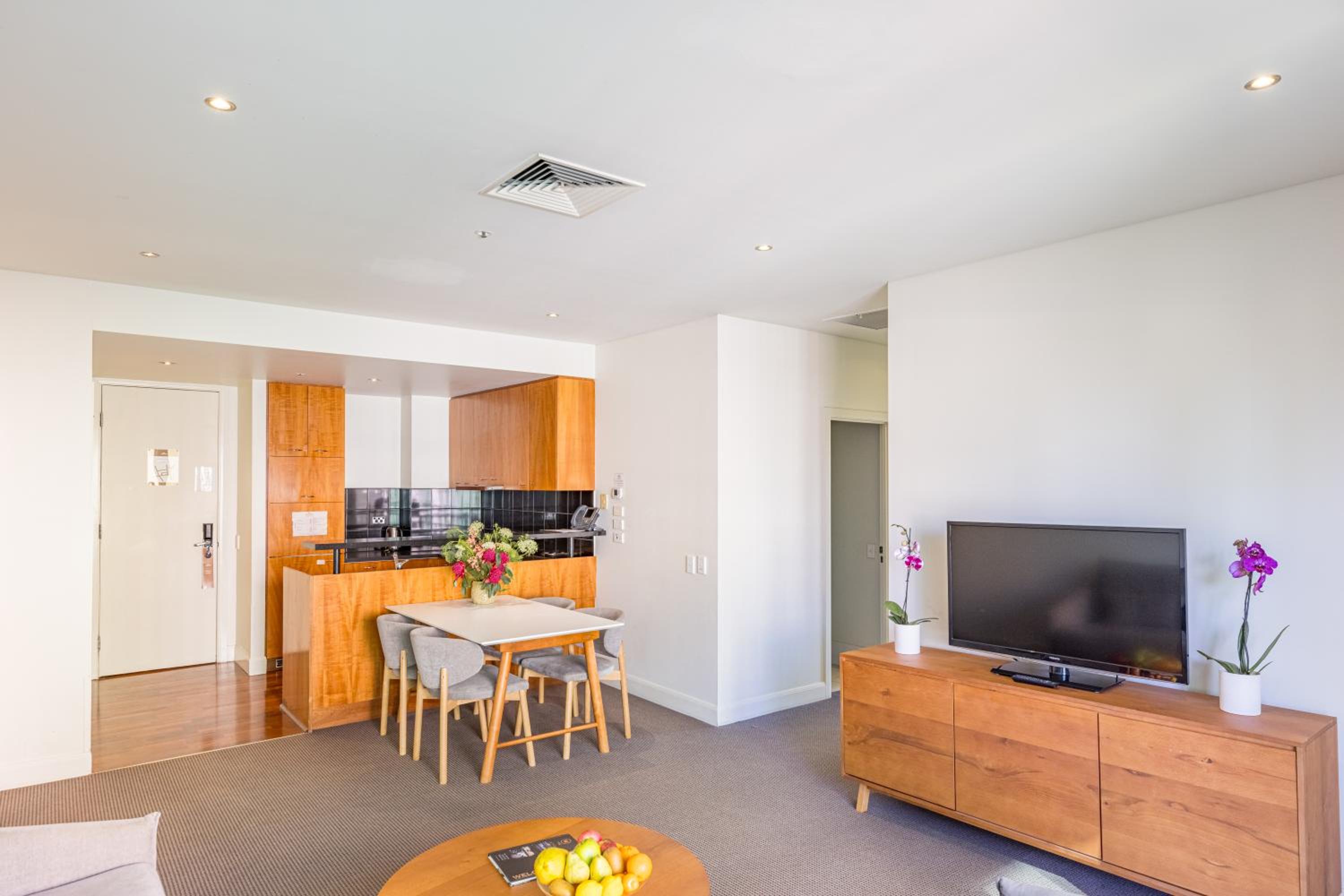 My room was large and had plenty of space to relax. The kitchenette was great, with all equipment needed. Staying for several nights, the washing machine and clothes dryer were appreciated. The hotel is in a fabulous location, only minutes away from the Arts precinct and the Botanic Gardens.