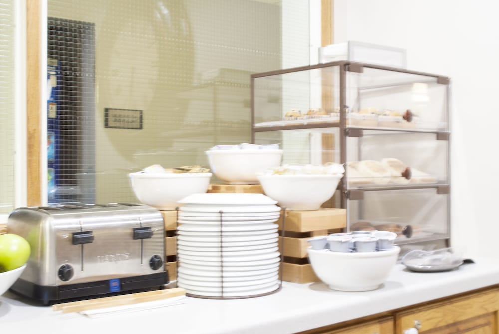 The rooms were ok, the pool area was not cleaned well, an old bag of candy was laying by the hot tub for who knows how long. Black mold caked on the vents in pool area. Breakfast was terrible, no sausage ,no orange juice, cranberry and apple juice was obviously watered down, the milk was expired by a week with chunks on the top. Save yourself, go somewhere else.