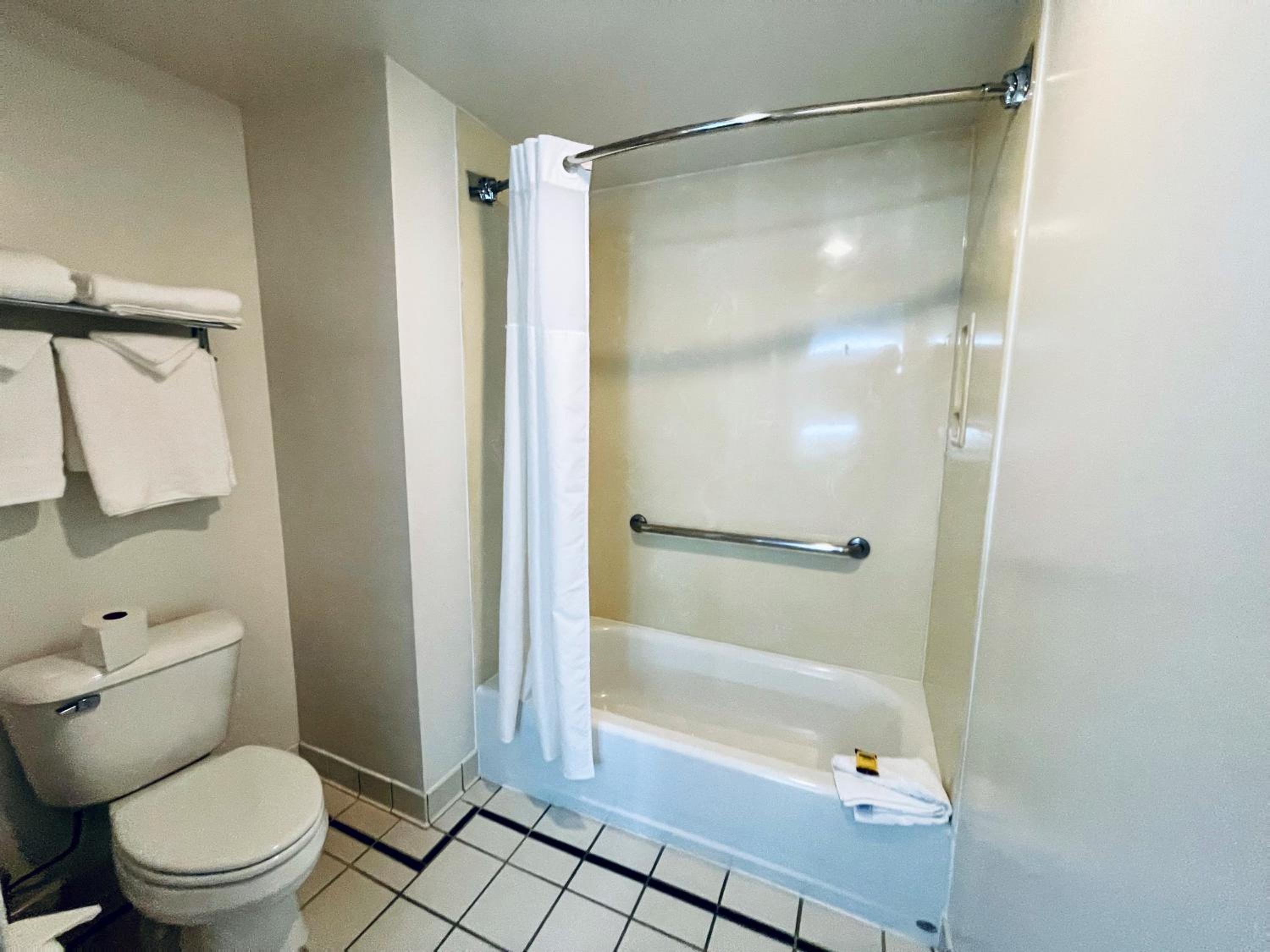 The front desk staff was rude. The pillows were not comfortable. The shower curtain was the wrong size, and the bathroom floor got all wet during the shower. No closet. Rack for hanging clothes fell to the floor in use. The toiletries were of poor quality. The room was hot. It did not feel clean.