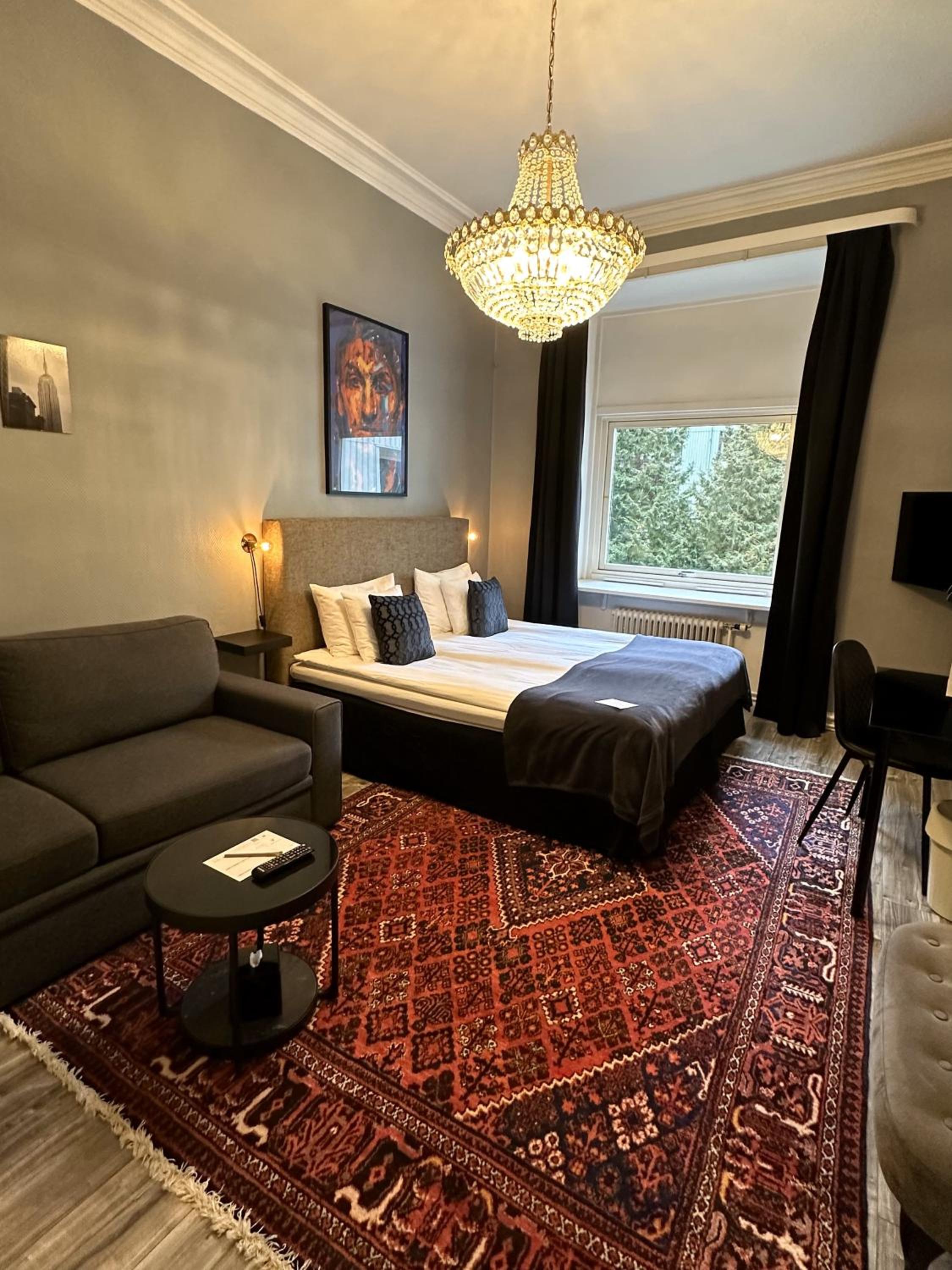 Hotell Onyxen offers a unique boutique experience in a 19th-century building, blending modern and vintage decor for a cozy feel.
