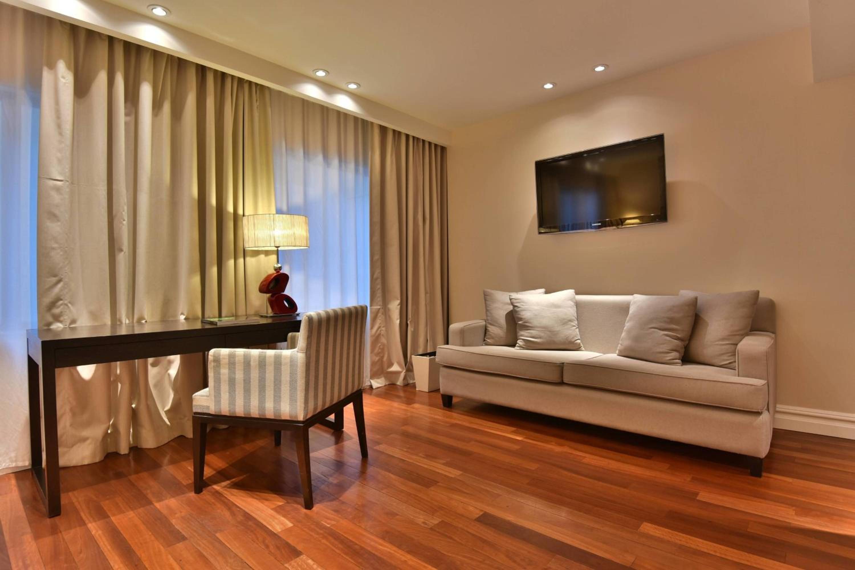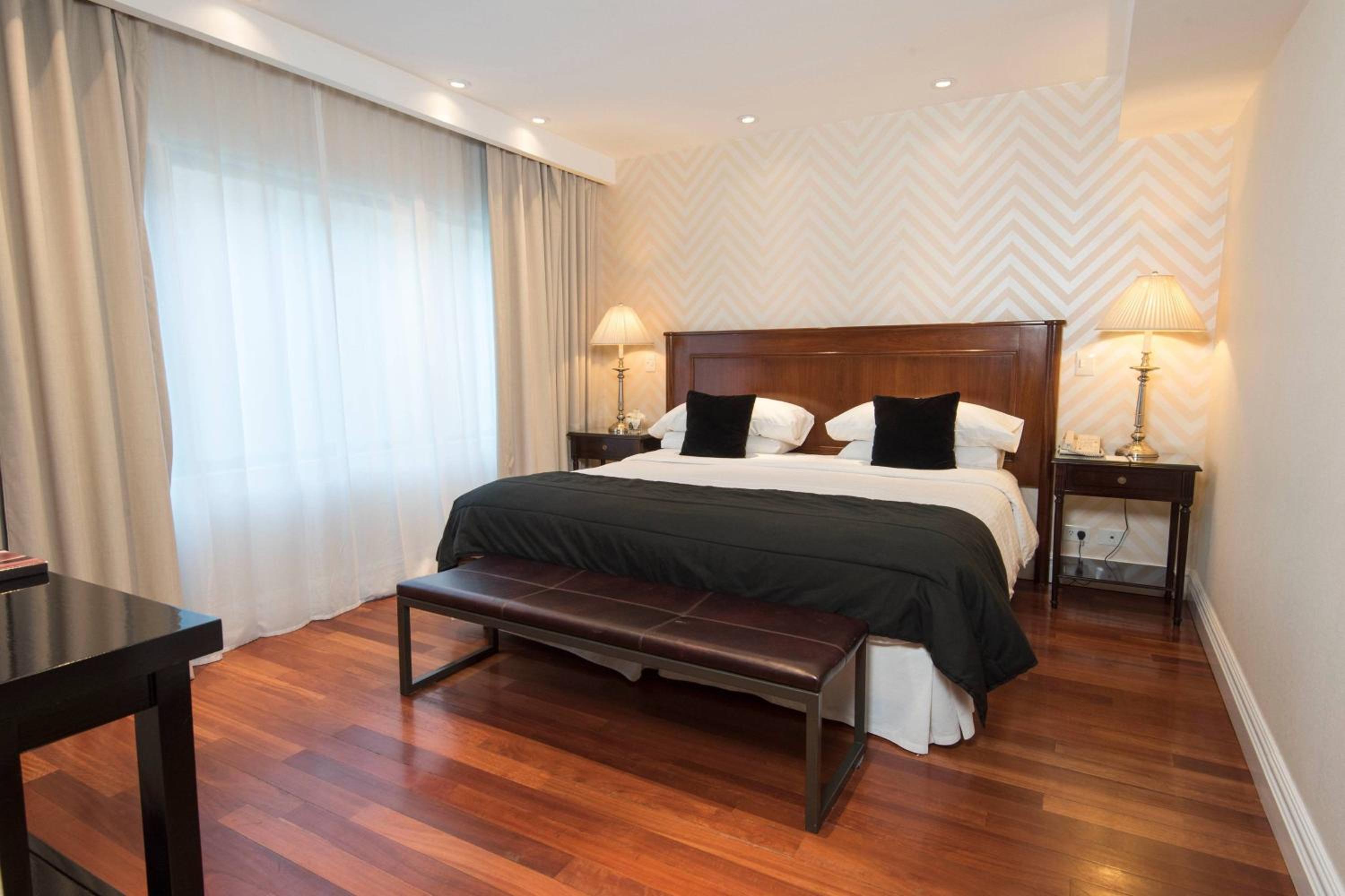 The rooms at Buenos Aires Marriott are elegantly furnished with stylish Italian designer furniture, LED TVs, and minibars. Featuring wooden floors and large windows, some rooms offer stunning city views, providing a luxurious and comfortable stay for guests.