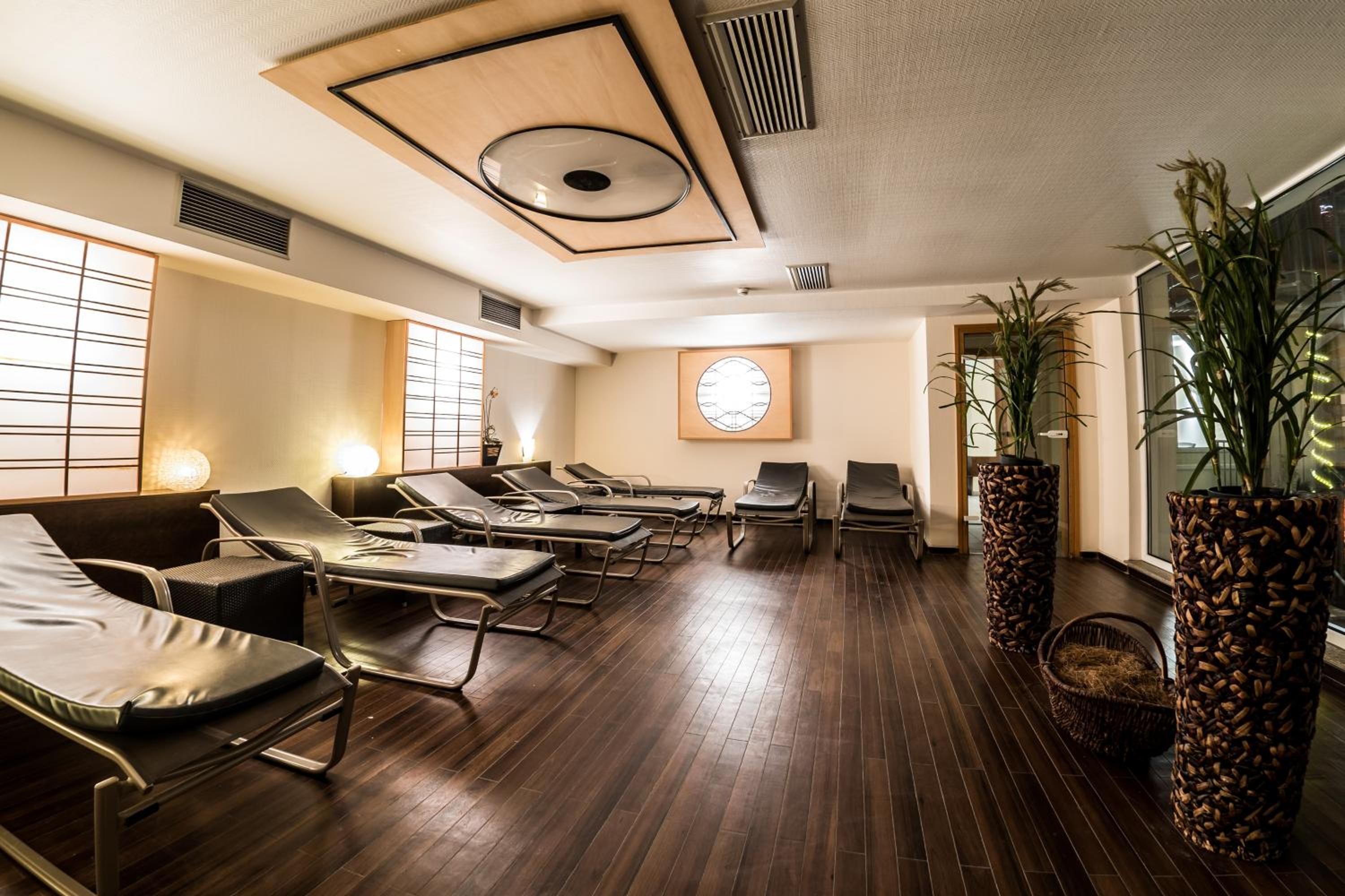 Guests at Mauritius Hotel & Therme can indulge in a lavish 3,500 m² spa featuring indoor and outdoor pools, 6 saunas, steam room, hot tubs, and a fitness center.
