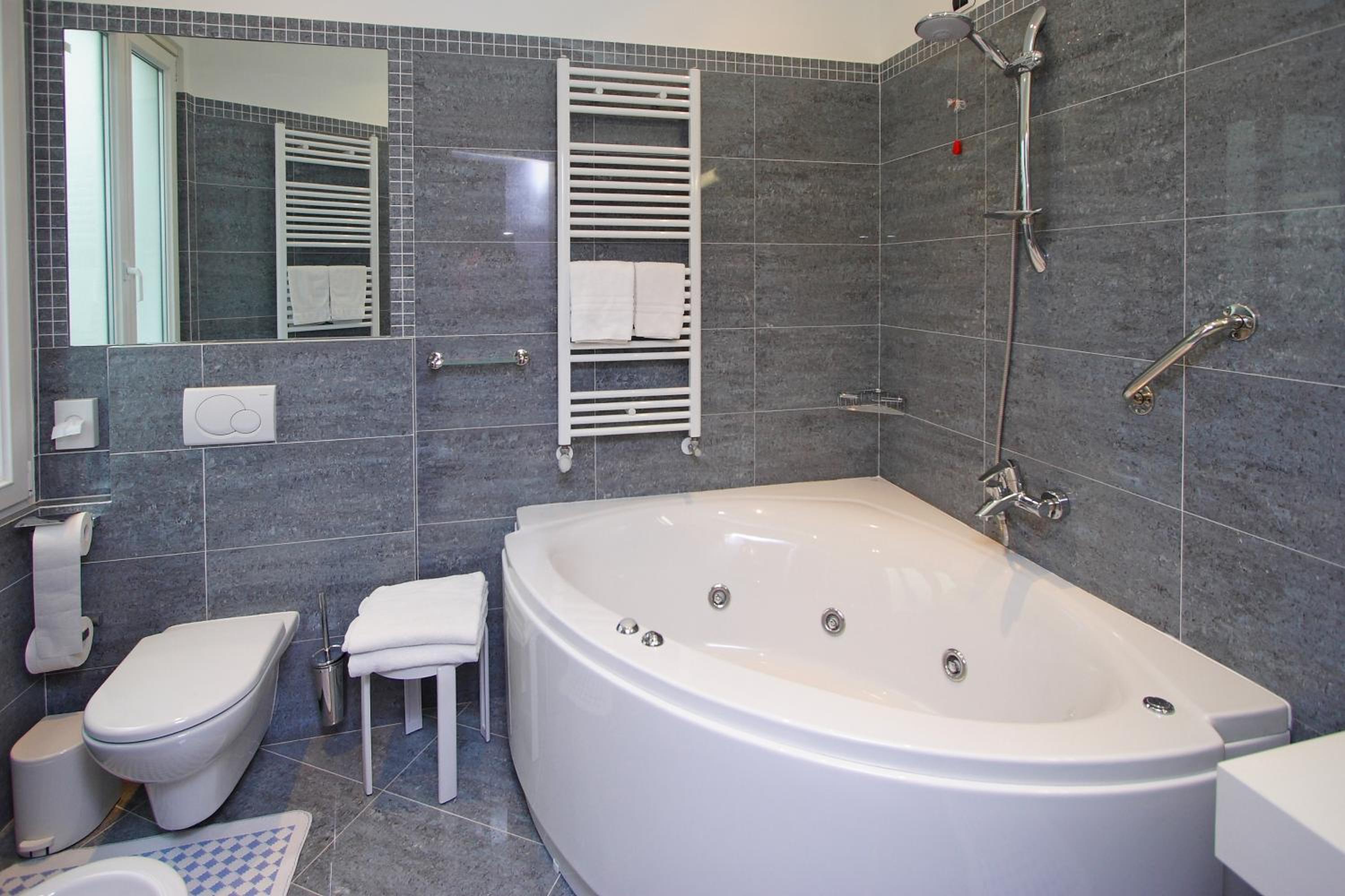 la colazione era discreta ma c'era pochissima scelta. Il succo di frutta era spesso annacquato. Il bagno abbastanza grande. La posizione era eccellente