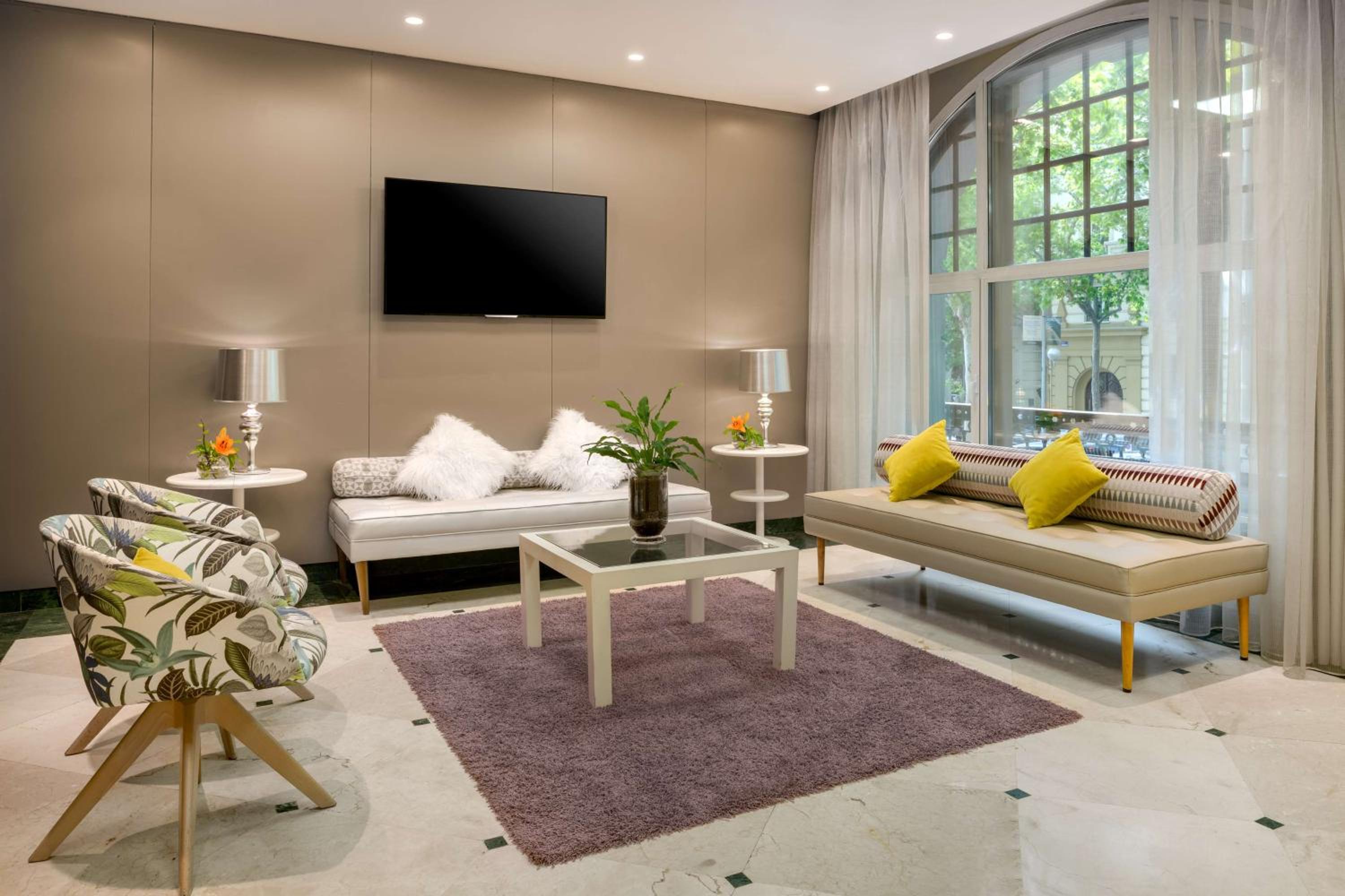 Indulge in the modern comforts of Nespresso machines, rain-effect showers, and 46-inch flat-screen TVs in every room. Enjoy the convenience of free WiFi, a free gym, and a beautiful terrace.