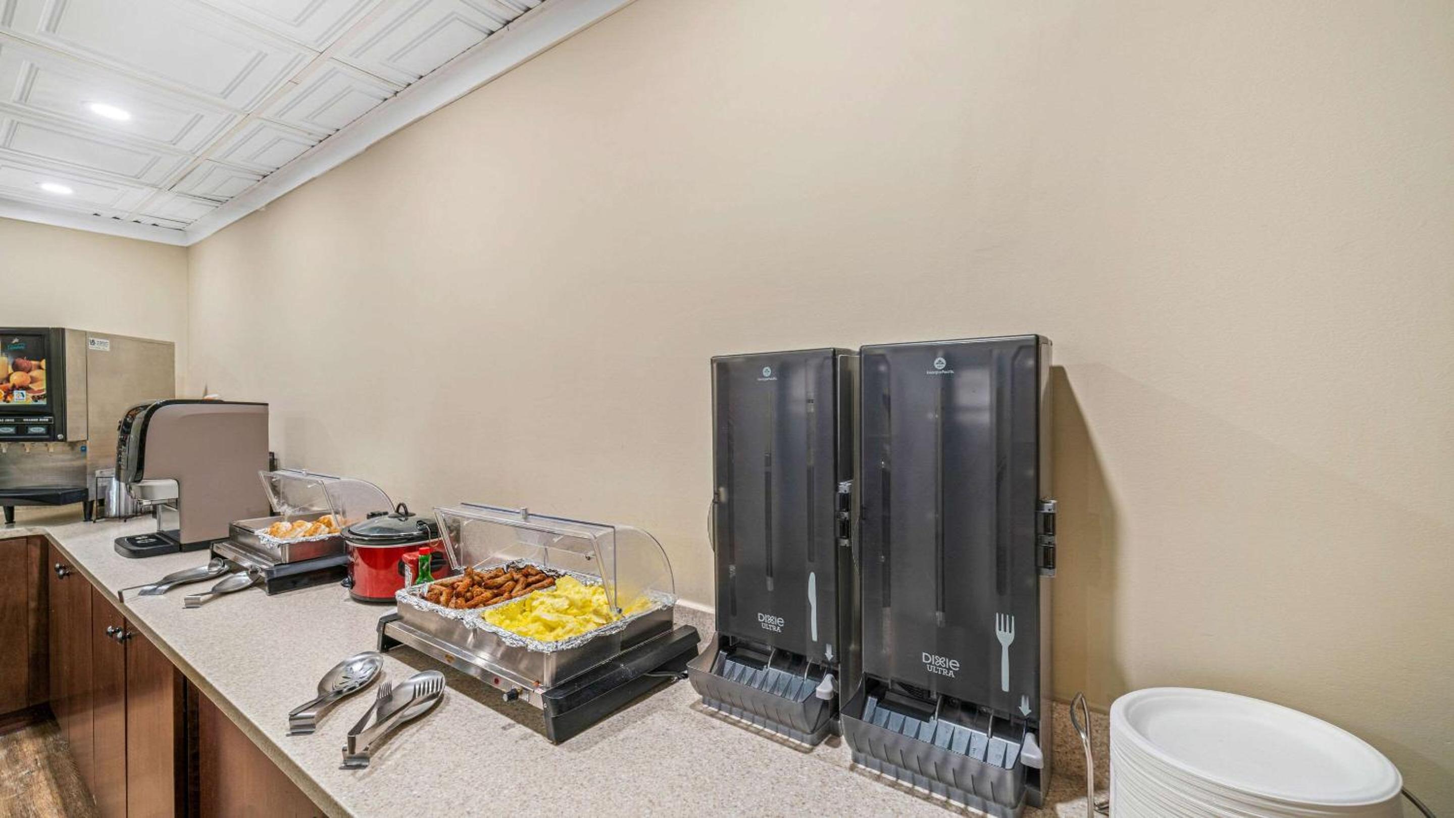 No breakfast provided and limited nearby options if you’re on foot. Using your room keycard to get into the building, then again to get on the elevator. Room I had was small.