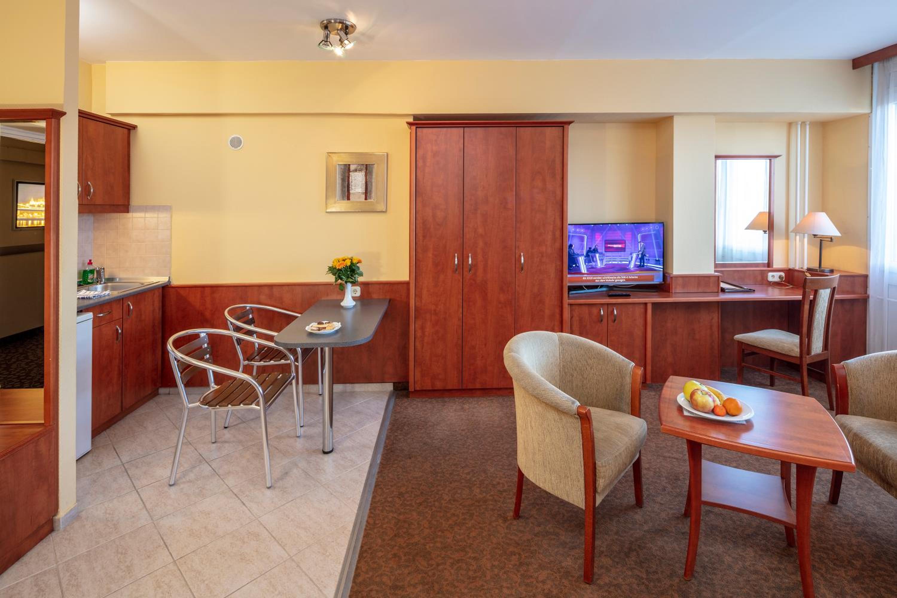 Enjoy spacious rooms equipped with a kitchenette, perfect for both leisure and business travelers. Start your day with a delicious breakfast buffet before exploring the vibrant Hungarian capital.