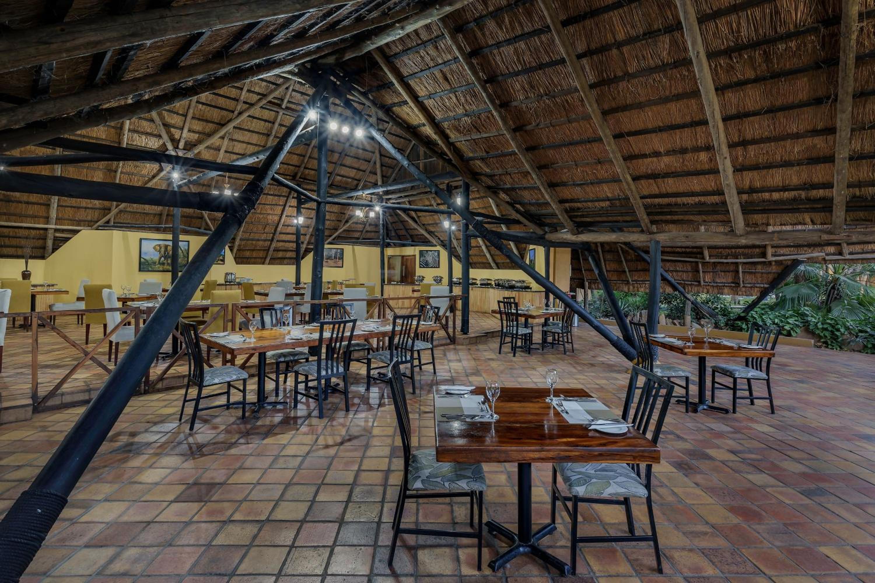 Indulge in delectable meals at our on-site restaurant and bar, located in a unique open-sided building. Experience the essence of a safari while enjoying delicious food and drinks in a picturesque setting.