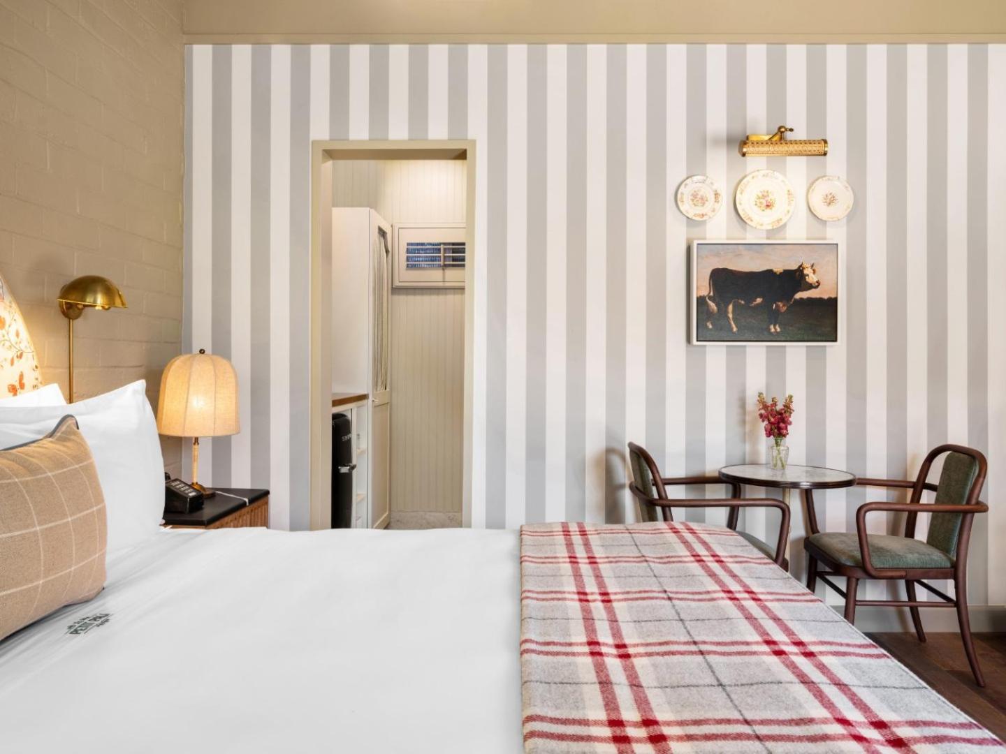 The service was exceptional - from friendly check-in to support with our breakfast, parking, and bags. The inn buildings are vintage and compact, lending it charm and a boutique intimacy. The rooms, while modestly sized, are very comfortably and elegantly appointed, and a welcome oasis after touring busy Los Angeles. The rooms are well sound-proofed for a restful night's sleep. The continental breakfast is delightful - your chosen items are discreetly delivered to your door each morning in a sweet picnic basket (do choose the fresh baked croissant). There is a pleasant outdoor seating area away from the street where you can read or relax in the sun. Free on site parking is another bonus. This inn is one of the few lodging options right in Brentwood. A lovely stay all around, highly recommend and will return.