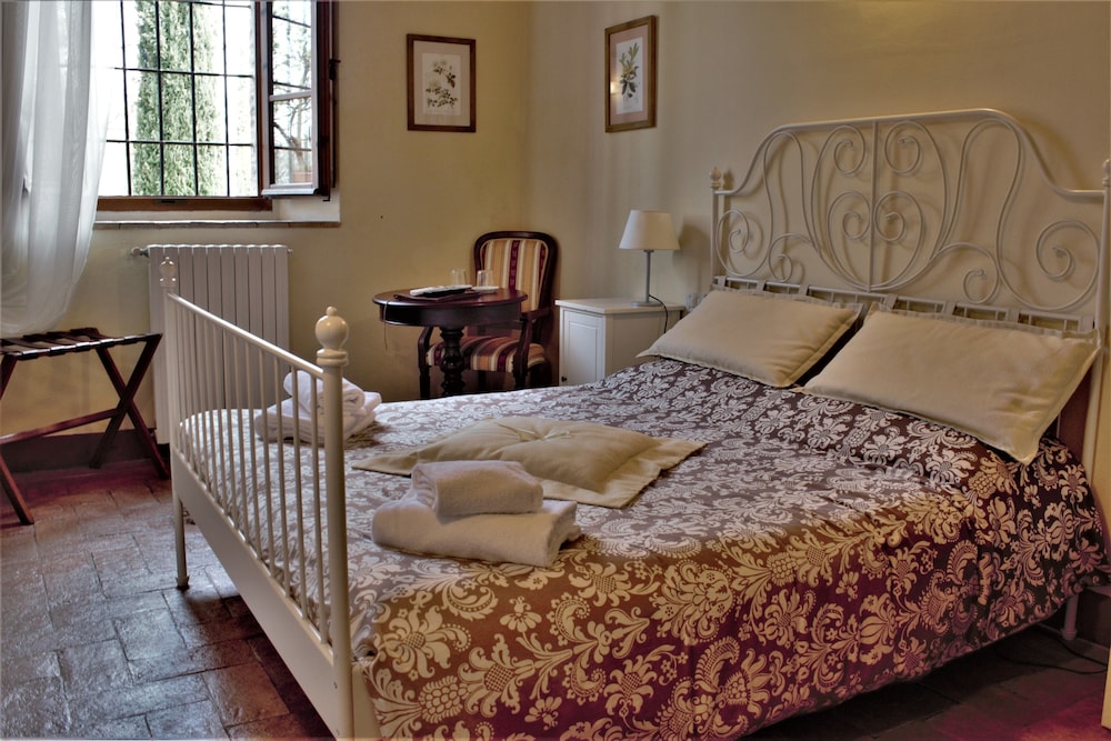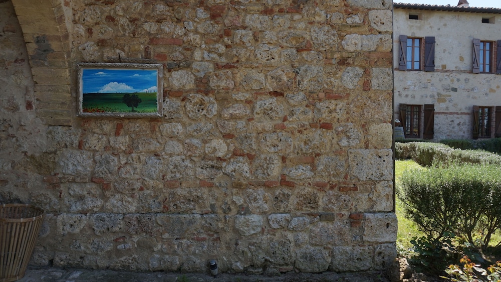 Beautiful place in a beautiful peaceful location, the surrounding landscape is idyllic. The pool area is lovely and quiet and you can have drinks brought to you from the bar. The staff are lovely and are there when you need them but let you get on with it. The young girl (sorry didn’t take her name) is lovely and really helpful. The breakfast choices are great and the dinner menu is exceptional. What an amazing place we loved it. Watch out for the European Bee Eater birds and fire flies. We stayed in room 19 which has a little balcony and pool view so I would ask for that room if you can. You don’t need towels for the pool area they are included and there are plenty of toiletries in the bathroom including toothbrushes and toothpaste, shower gel, shampoo and conditioner which is enough for a few days. You can walk to Monteriggioni from here and also up to the mountain nearby amongst other places. It’s a perfect base for visiting Siena and Florence. Go to Col De Val D’Elsa if can and also Volterra.