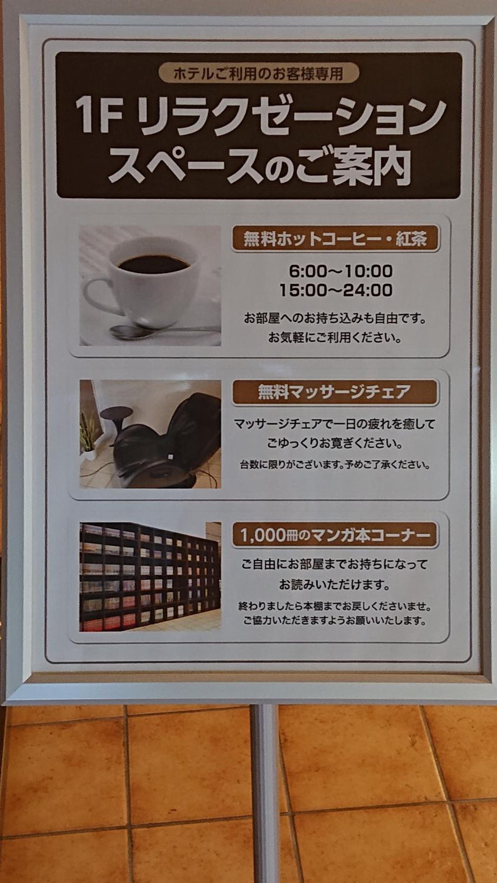 ウェルカムドリンク、サウナ、マッサージリラクゼーションスペース
