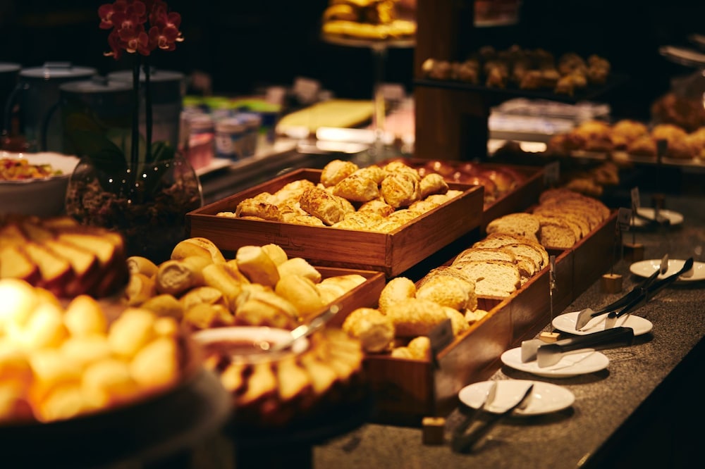 Café da manhã podia ser um pouco mais completo de frutas e o omelete acabava ficando mais seco, e ao invés de salsichas e calabresa poderia ser bacon, mas é uma questão de gosto. O café era muito forte e tinha gosto de café queimado. Os atendentes eram muito atenciosos e simpáticos. Hotel lindo e muito bem cuidado, flores lindíssimas, academia maravilhosa. Somente o café que não atendeu ao padrão de todo o resto. Café nota 7,5 e hotel nota 10!