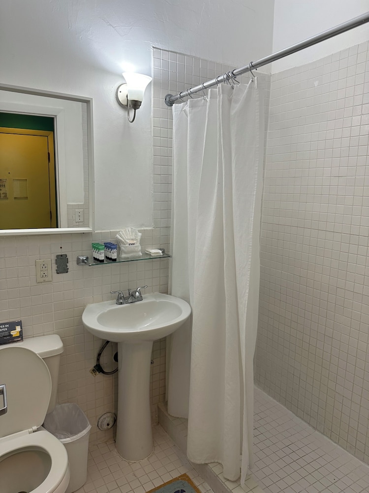 Location can't be beat. Part of hotel on Washington, but most faces side streets so not so noisy and crowded. Only 3 blocks to beach. Several convenience stores nearby, though there is a Publix at 6th and Alton. Rooms are clean and recently updated with fridge and microwave. Bed comfy. 24 hour front desk. All staff I interacted with courteous. Check the closet, there's a beach umbrella there. Beach towels and ice at the front desk.