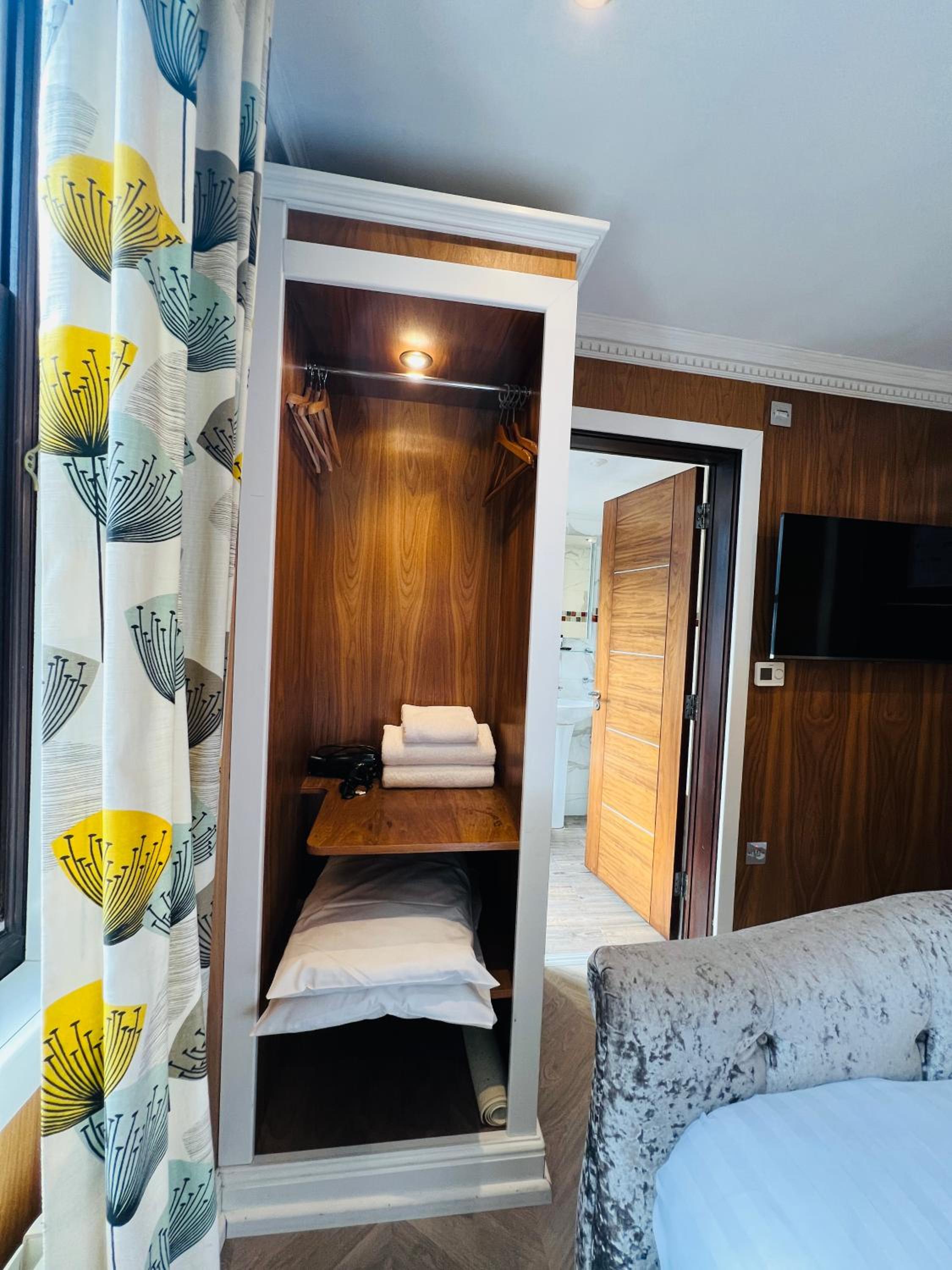 Very noisy in the room as the windows aren’t double glazed, and it’s in the corner of busy streets.