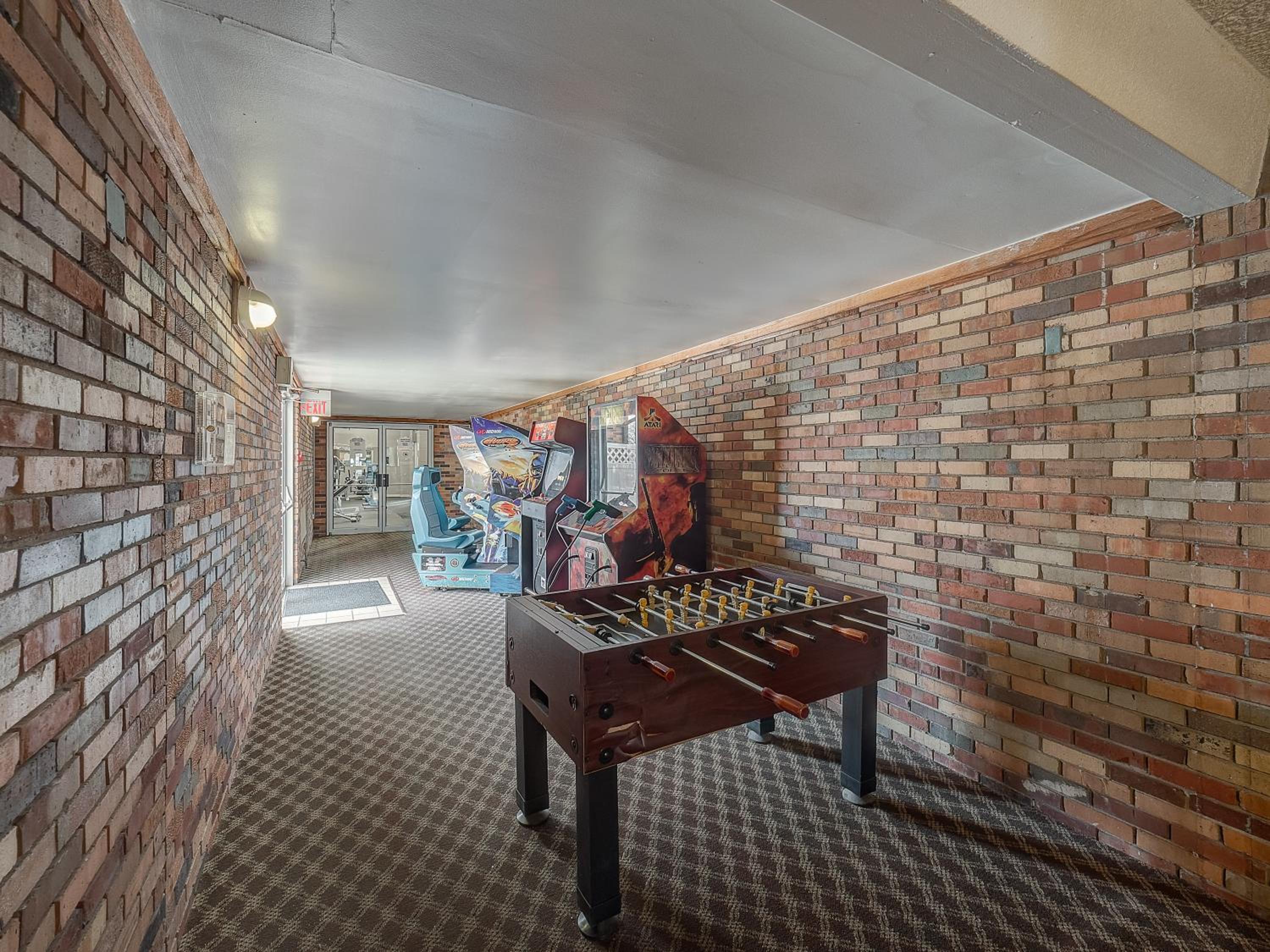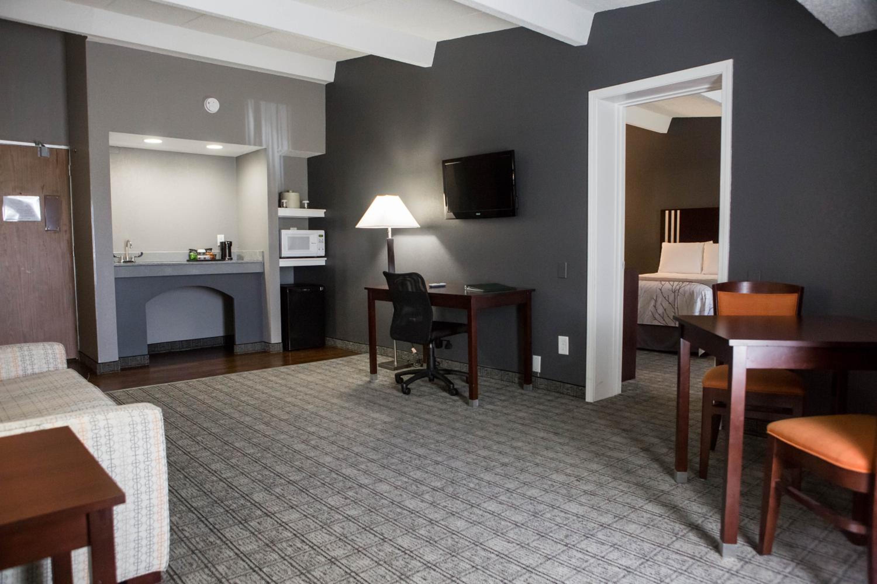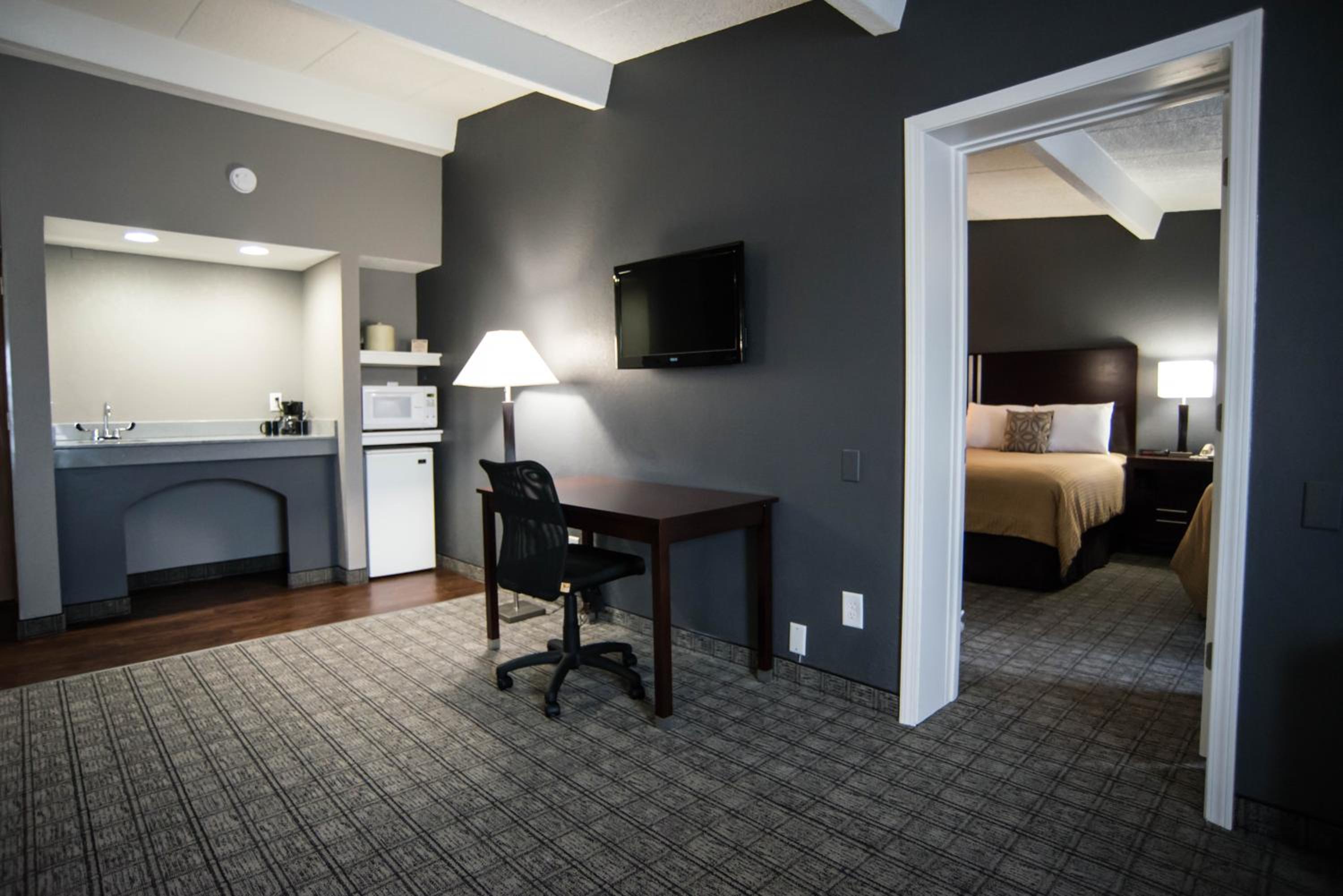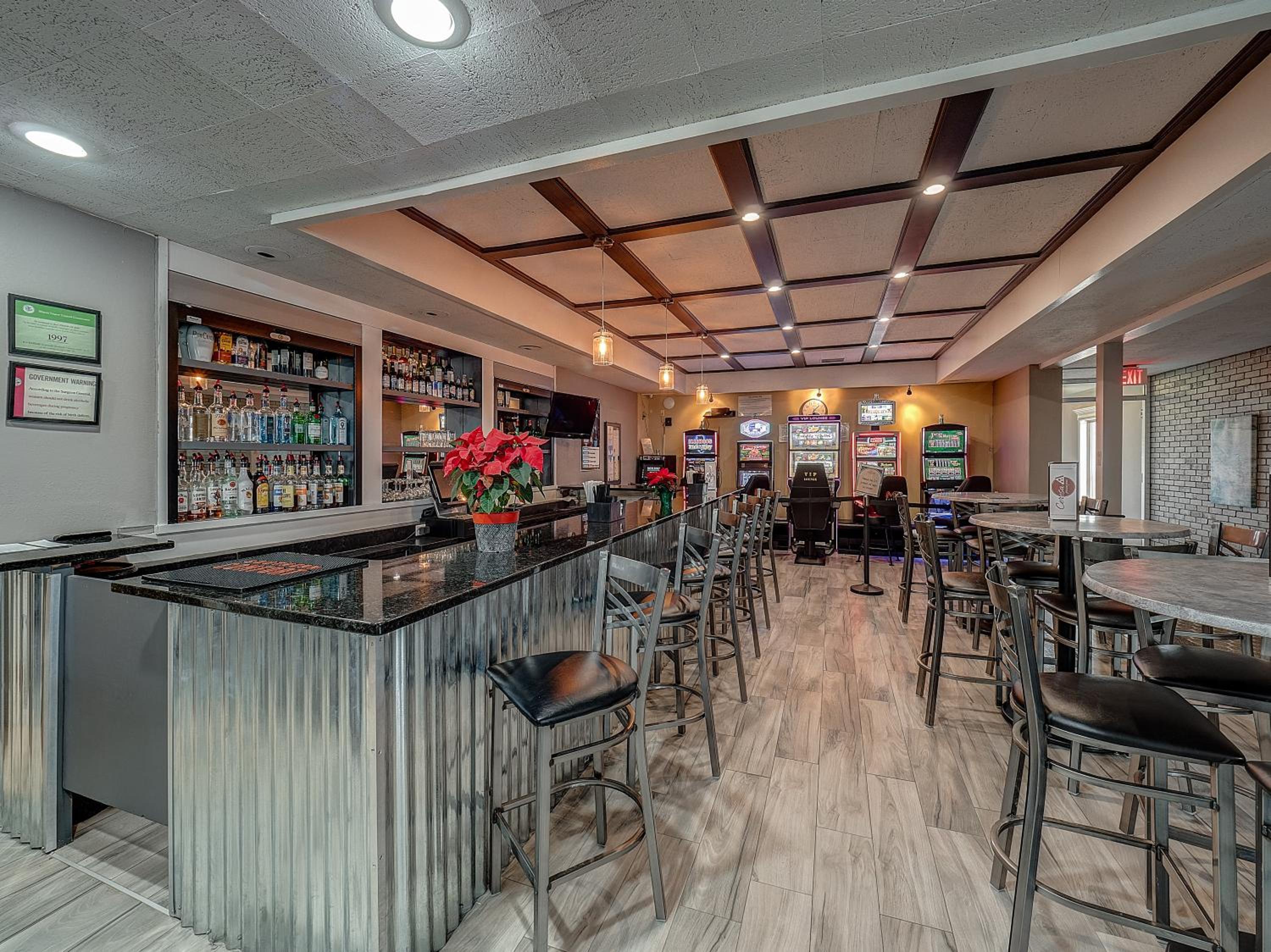 This hotel was great for the price. The room was very large with a kitchen and sitting room. The outside needed a little spiffing up but for the most part it was great! There is a small bar in the lobby with a few gimbaling machines. The bar was out of ice while we were there, but it was a nice little area to end the evening.