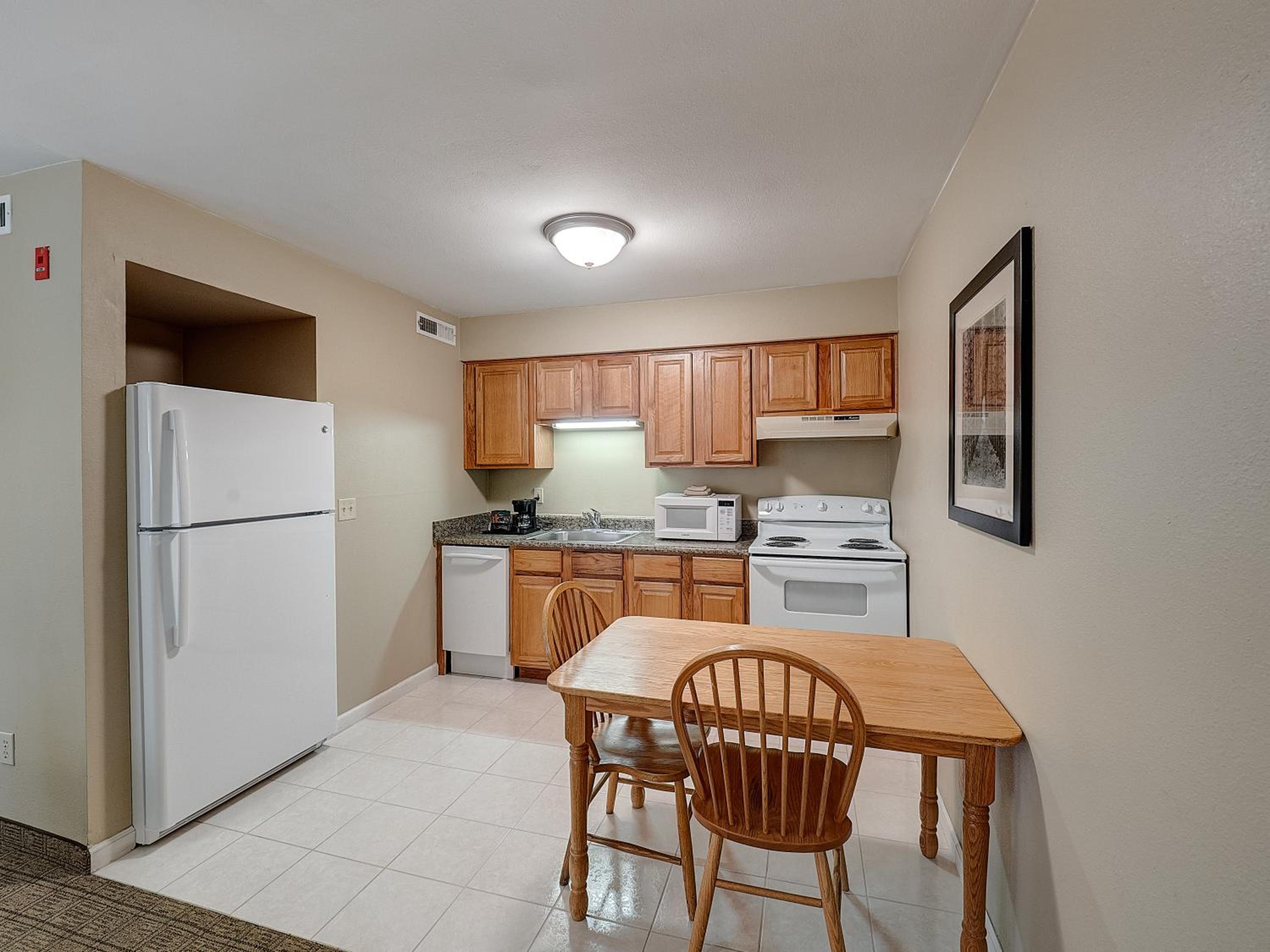 Public Bathrooms not clean. Room was not up to par. Got a kitchenette no pots, pans, utensils no dish soap. No trash can this should have been equipped with everything. Bed had no spread. Dingy